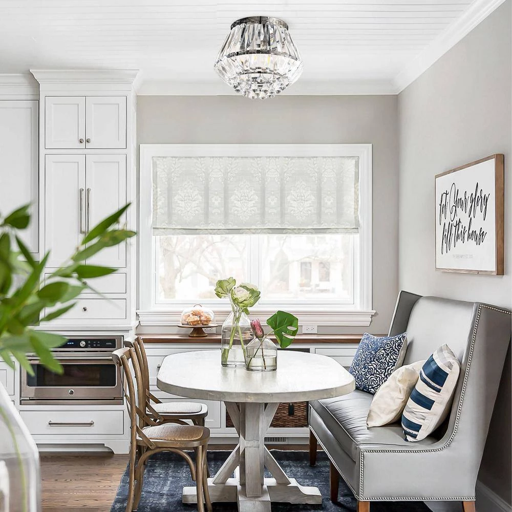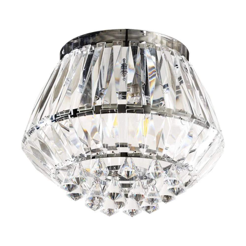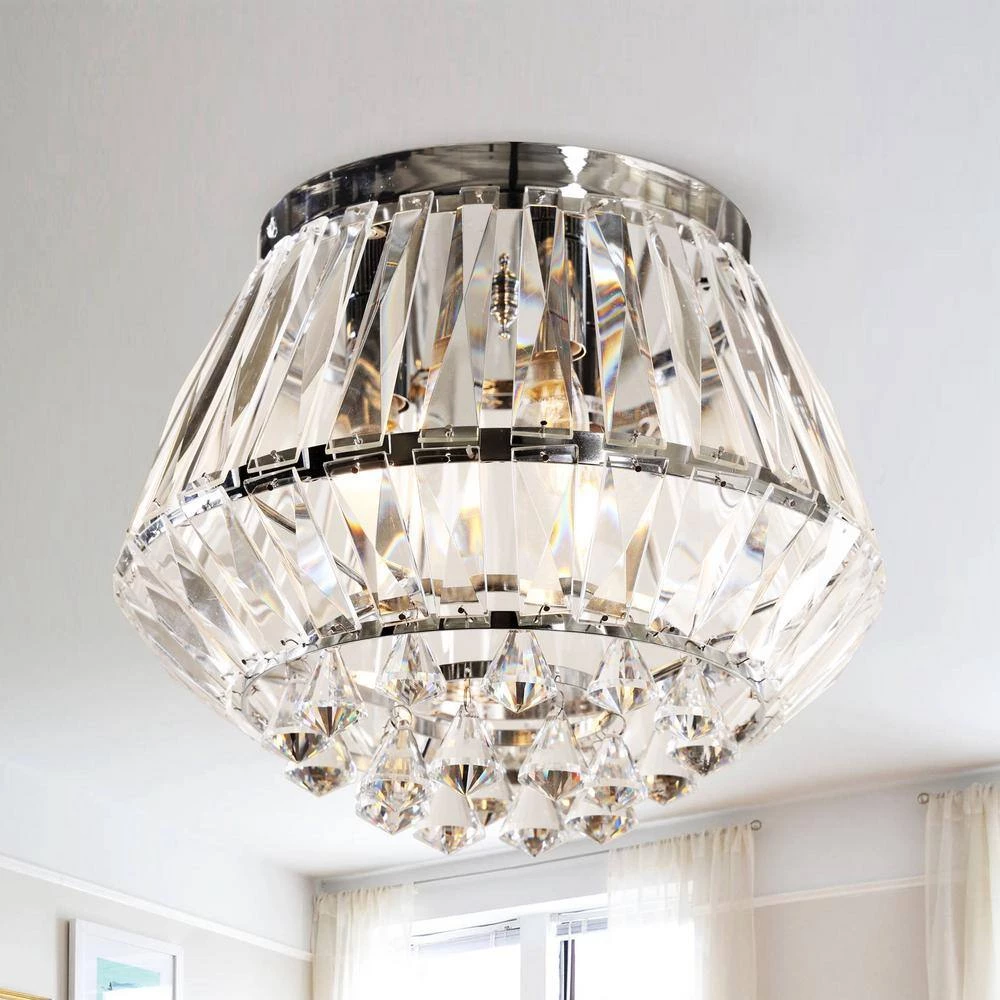 This crystal chandelier uses three 40-Watt bulbs to provide evenly dispersed multi-directional light. Set an enthralling atmosphere when you switch on the incandescent bulbs and watch as this brilliant fixture captivates you guests. Install this Flush Mount in a room and give it an elegant makeover.