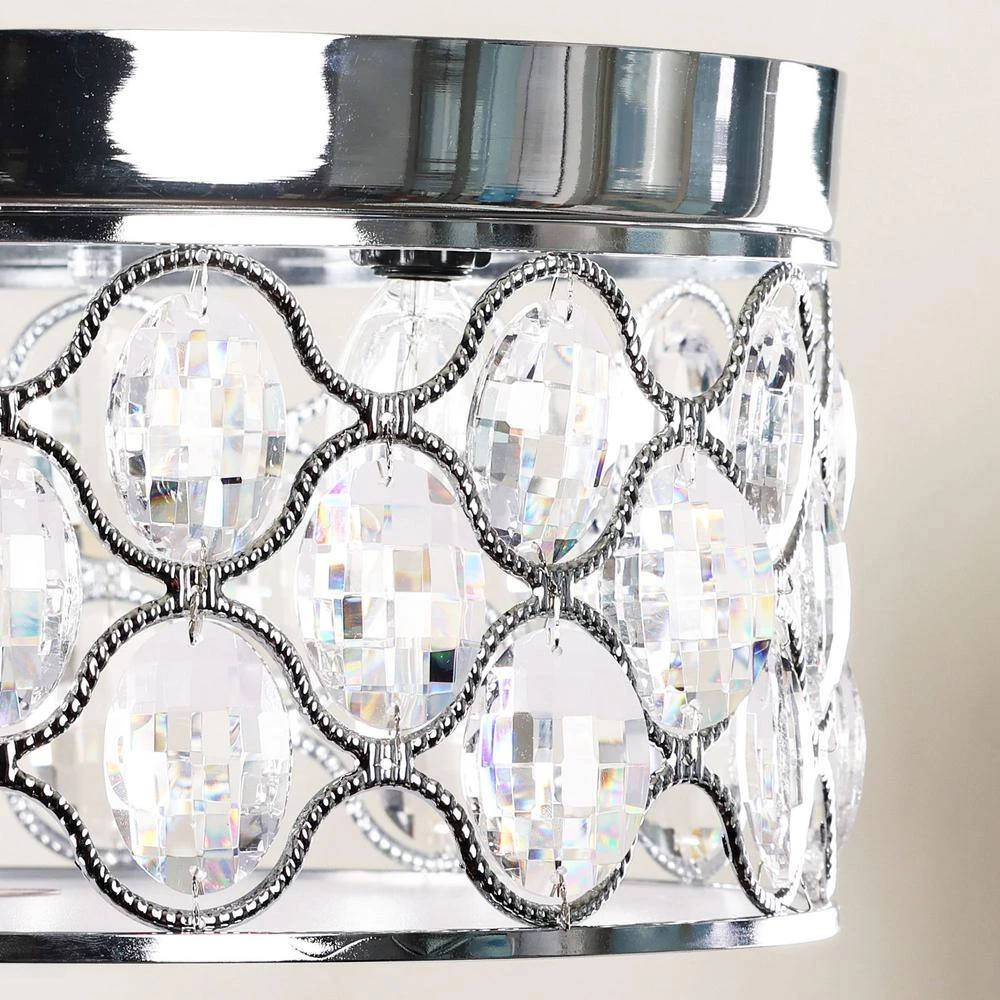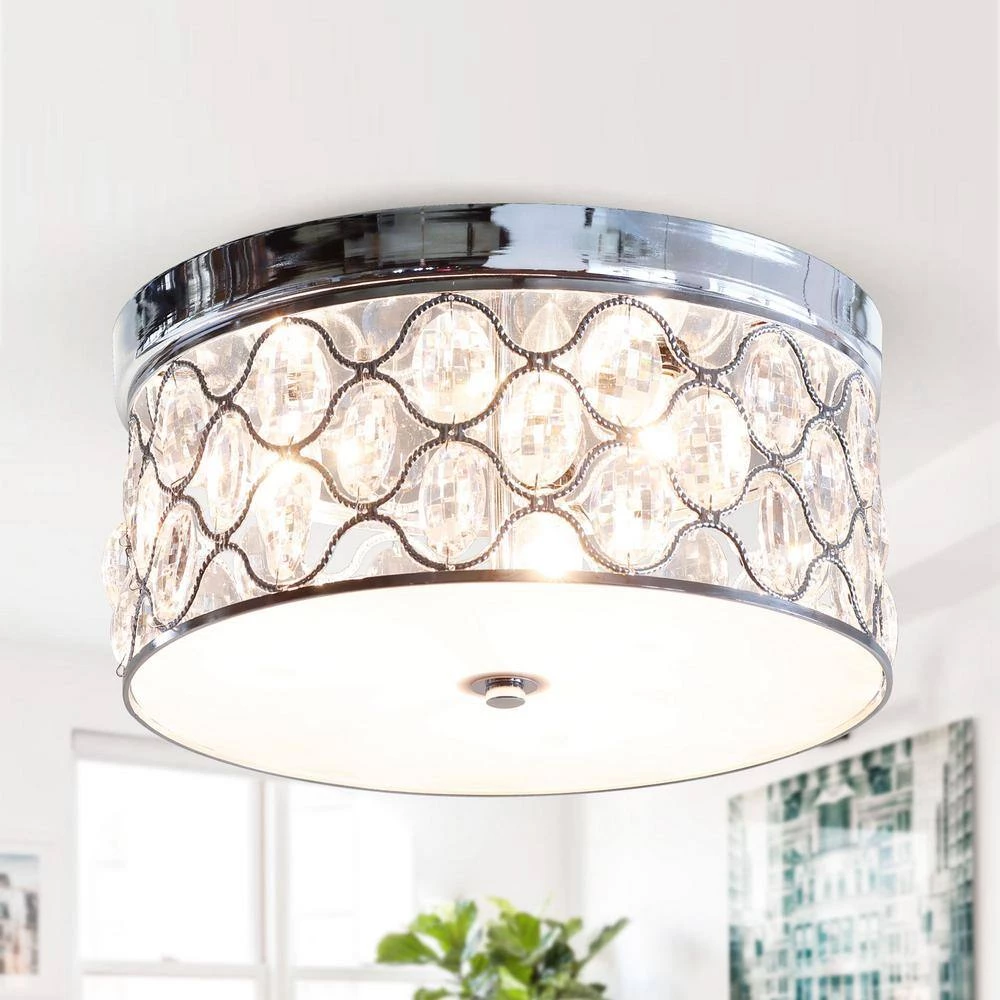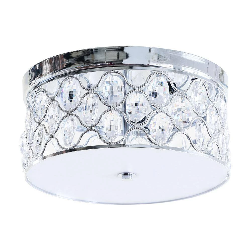 Sophisticated style abounds with this round statement-making flush mount, an eye-catching addition to your luminary ensemble. Its crystal-inspired details add a refined touch to your decor, while its chrome finish adds shimmering style to any space. Lean into this piece’s glam influence by adding this flush mount to a living room arrangement alongside a tufted mid-century-inspired sofa and velvet-upholstered barrel chairs for a complementing look.