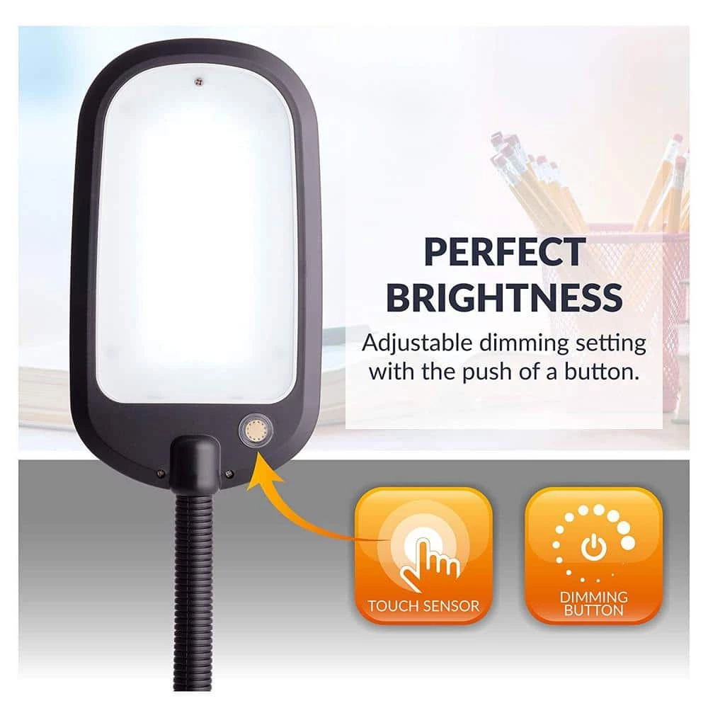 - Adjustable Light: A touch dimmer sensor gives you brightness control and a flexible lamp neck provides light where you need it.