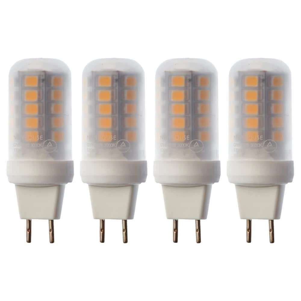 The 5-Watt Newhouse Lighting GY6.35 base bulb is the perfect substitute for an old halogen GY6.35 bulb. The GY6.35 LED light bulb has a low-heat feature what will keep it cool during long working hours, unlike halogens which tend to get extremely hot. This smart alternative to halogen bulbs uses up to 80% less energy than Halogen bulbs- and uses only 5-Watt of power to emit the same amount of light. This unique bulb is suitable for damp locations, so you won’t have to worry about weathering or humidity damaging your bulb. Compliant with FCC Standards, this bulb has no electromagnetic interference. It is also compliant with RoHS to ensure that it is Mercury and Lead Free. Mercury-free and other pollutant-free properties make this bulb a safer choice. This soft white, compact LED bulb is ideal for any space: Ceiling Fans, Desk Lamps, Accent Lights, Chandeliers, Track Lighting, Wall Mounts, Wall Sconces, Outdoor Fixtures, Landscape Lighting, Marine, Boats, Yachts, Puck Lights, Under cabinets, Talk Lighting, Garden Lighting Decorative and more. This bulb comes in a convenient 4-pack for ultimate value.