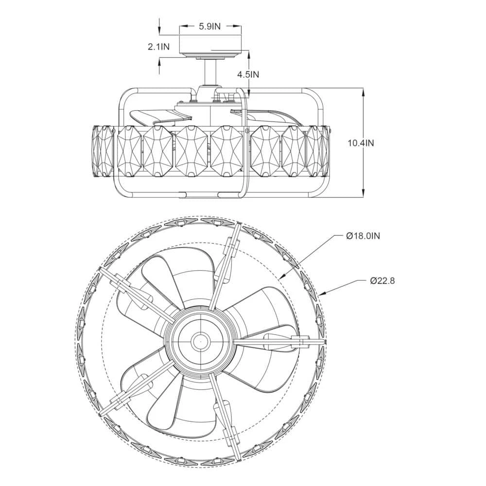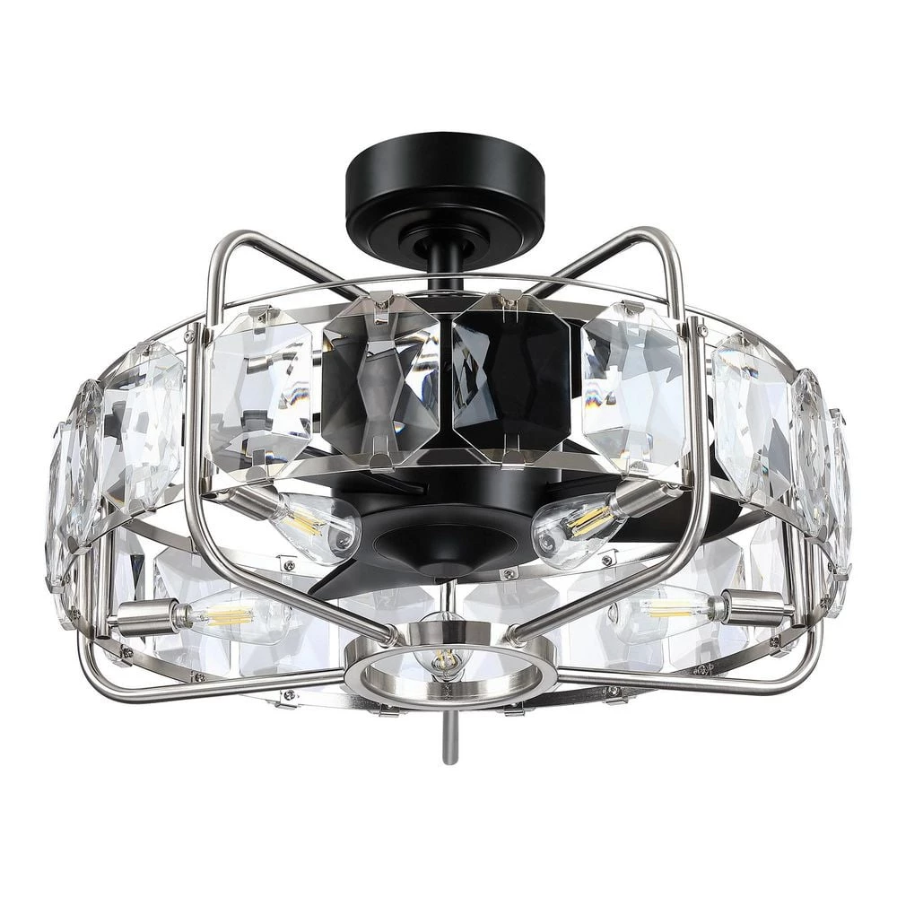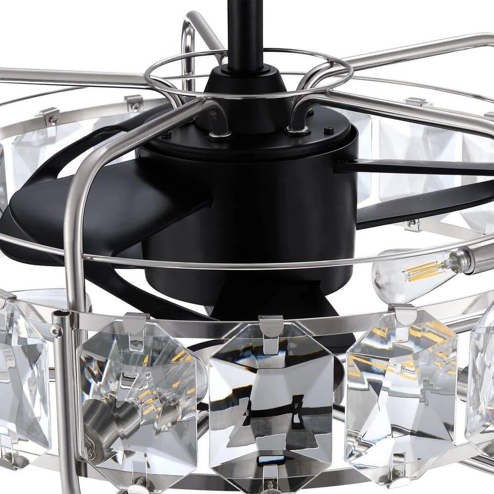 This fan light is designed in a crystal industrial style. Matte black fan body, the lamp body has been treated with multi-layer special process and is durable. The crystal cage shade is the perfect combination of modern and industrial style.