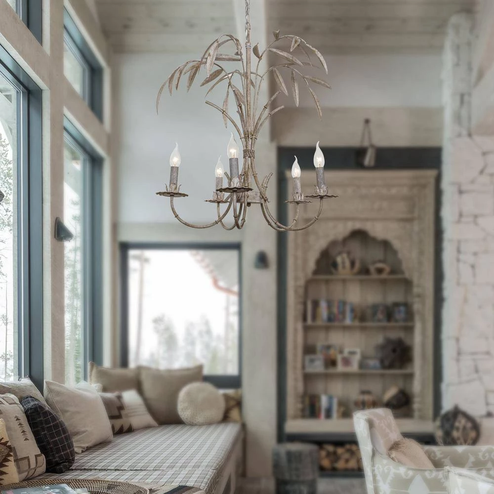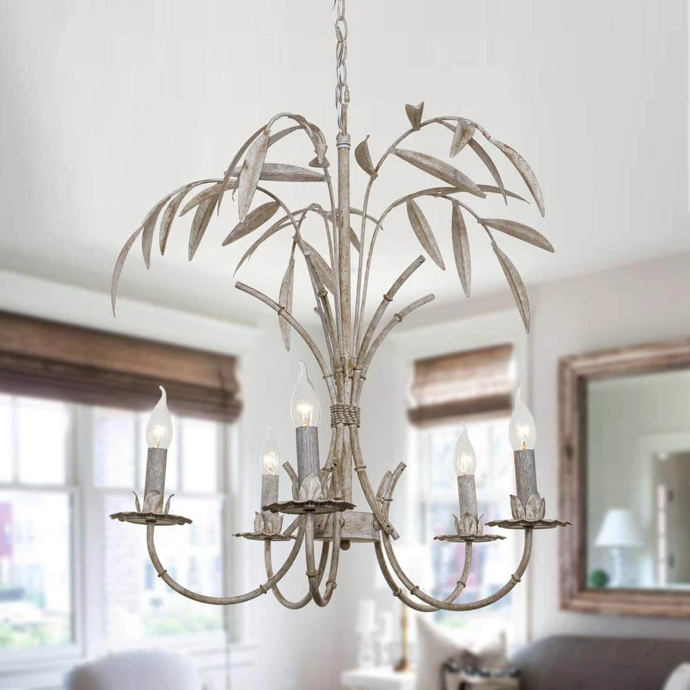 Capturing attention in a way, other fixtures can’t, chandeliers make a statement in any interior design without stealing valuable floor space. Crafted of an aged finish, this chandelier showcases a swirling scrollwork frame featuring 5 curling arms topped with candle-style lights in round drip trays. Each light accommodates one 40-Watt incandescent candelabra base bulb to disperse bright light throughout your space. An 39.37 in. L of chain compatible canopy above to round out the design.