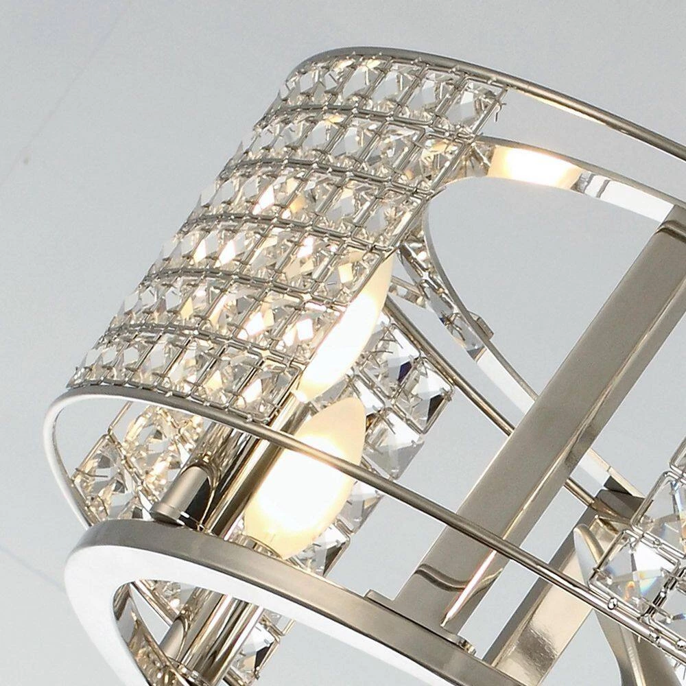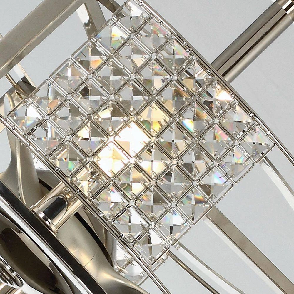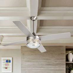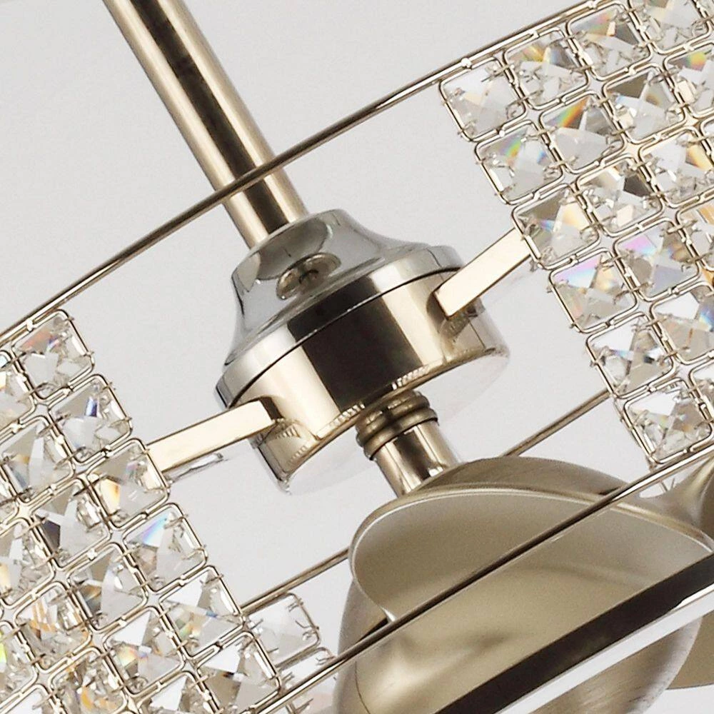 This fan light is designed in a crystal caged industrial style. Brushed nickel fan body, the lamp body has been treated with multi-layer special process and is durable. The crystal cage shade is the perfect combination of modern and industrial style.