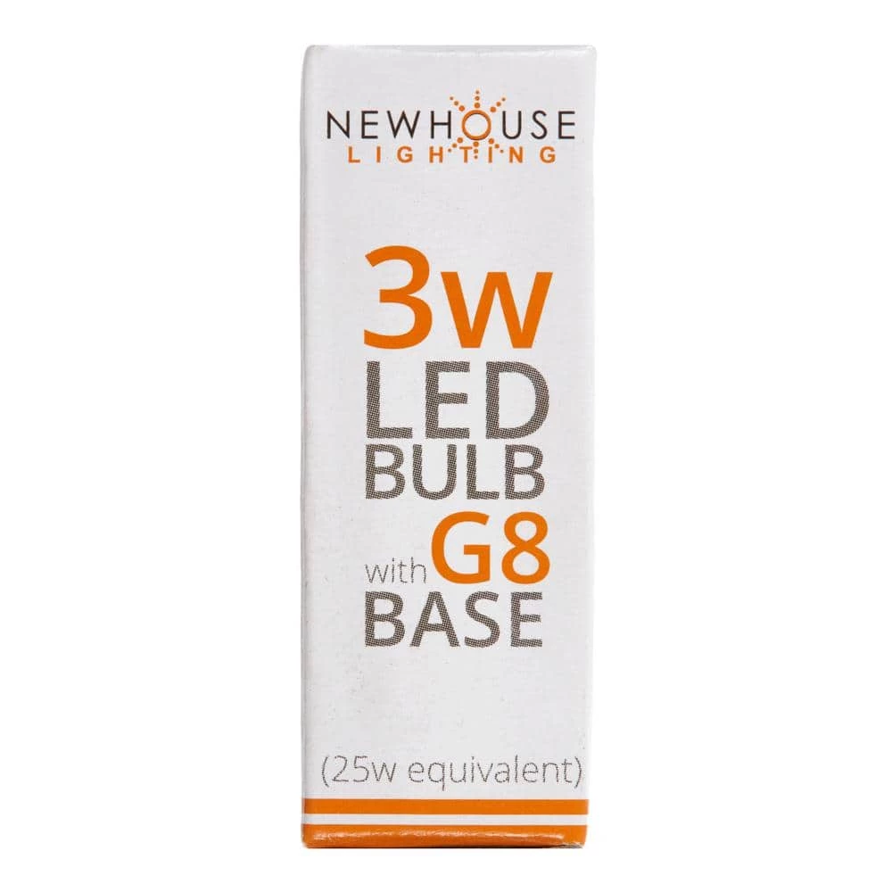 The 3-Watt Newhouse Lighting G8 Base Bulb is the perfect substitute for an old halogen G8 bulb. The G8 LED light bulb has a low-heat feature what will keep it cool during long working hours, unlike halogens which tend to get extremely hot. This smart alternative to halogen bulbs uses up to 80% less energy than Halogen bulbs- and uses only 3-Watt of power to emit the same amount of light. This unique bulb is suitable for damp locations, so you won’t have to worry about weathering or humidity damaging your bulb. Compliant with FCC Standards, this bulb has no electromagnetic interference. It is also compliant with RoHS to ensure that it is Mercury and Lead Free. Mercury-free and other pollutant-free properties make this bulb a safer choice. This soft white, compact LED bulb is ideal for any space: Under Counter Kitchen Lighting, Under-cabinet Lighting, Accent Lights, Puck Lights, Desk Lamps, Pendant Lights, Bathroom Vanity Lighting, Landscape Lighting, Chandeliers, Ceiling Lights, Downlights, Outdoor Garden Lights, Path Lights, Boats and RVs Lighting and more. This bulb comes in a convenient 4-pack for ultimate value.