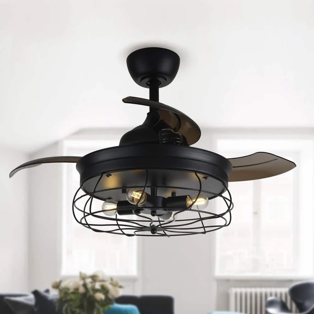 The fan speed and light can be controlled separately by remote control. Provided with both functions of traditional lamps and fans. That makes it very convenient for you to use in the living room, bedroom and so on. When you turn on the ceiling fan, the blades will stretch out, while when you turn off the fan, the blades will put inside automatically.