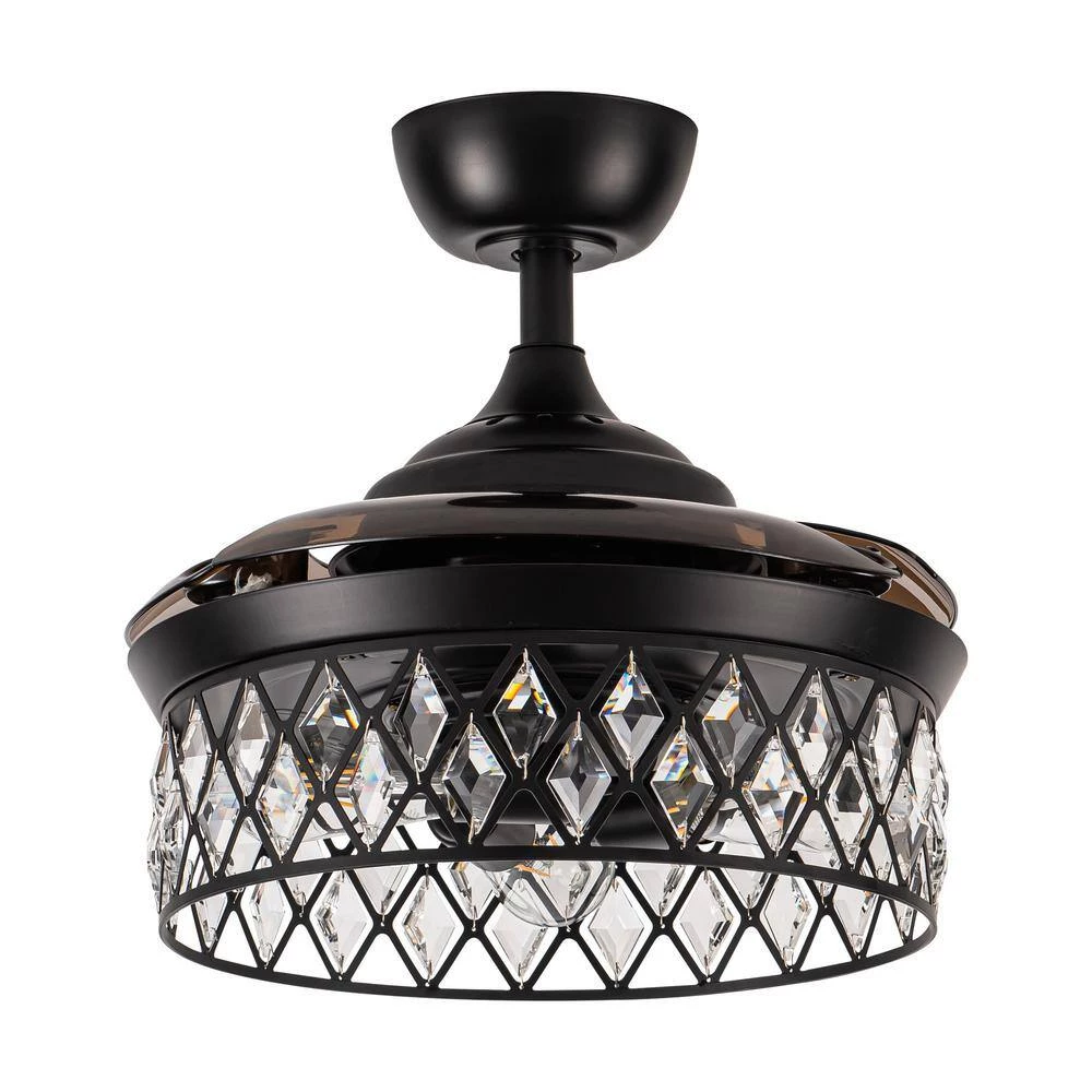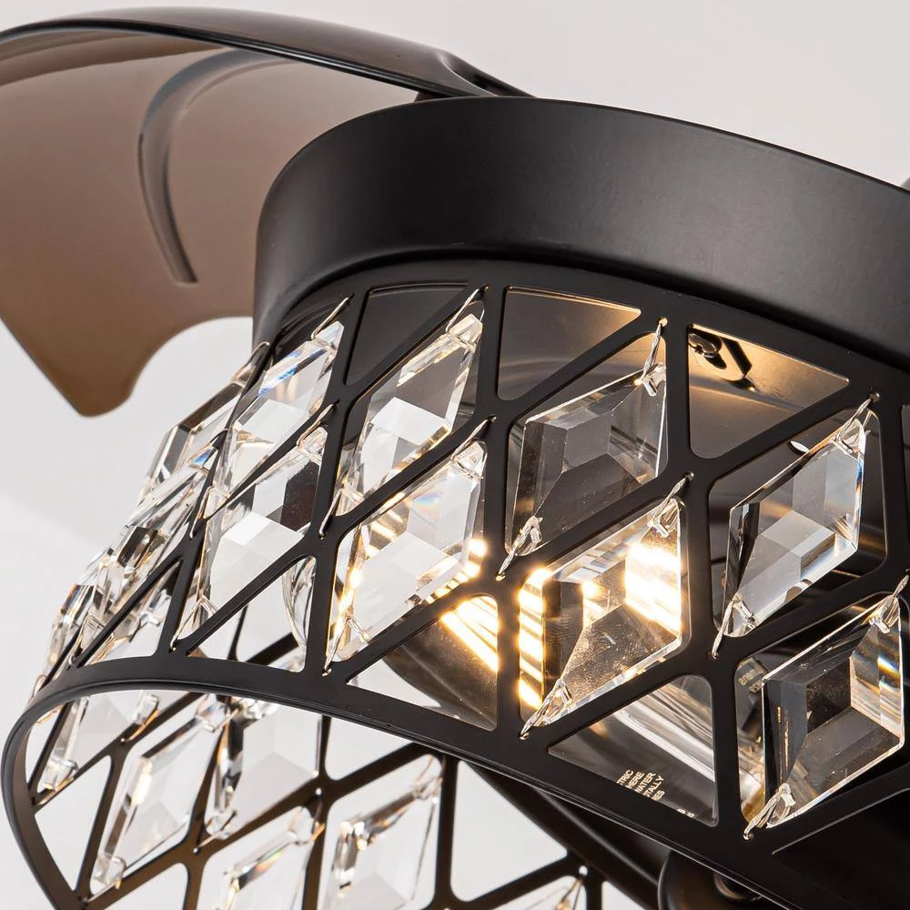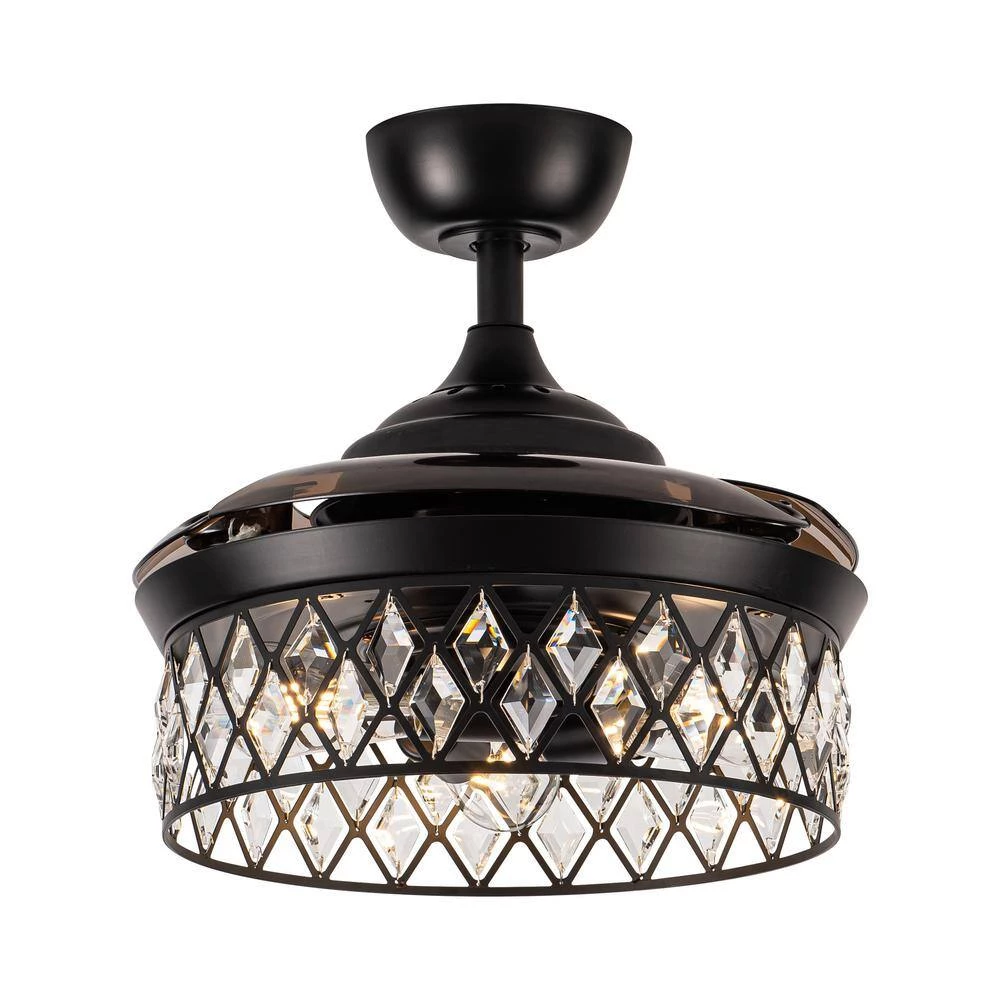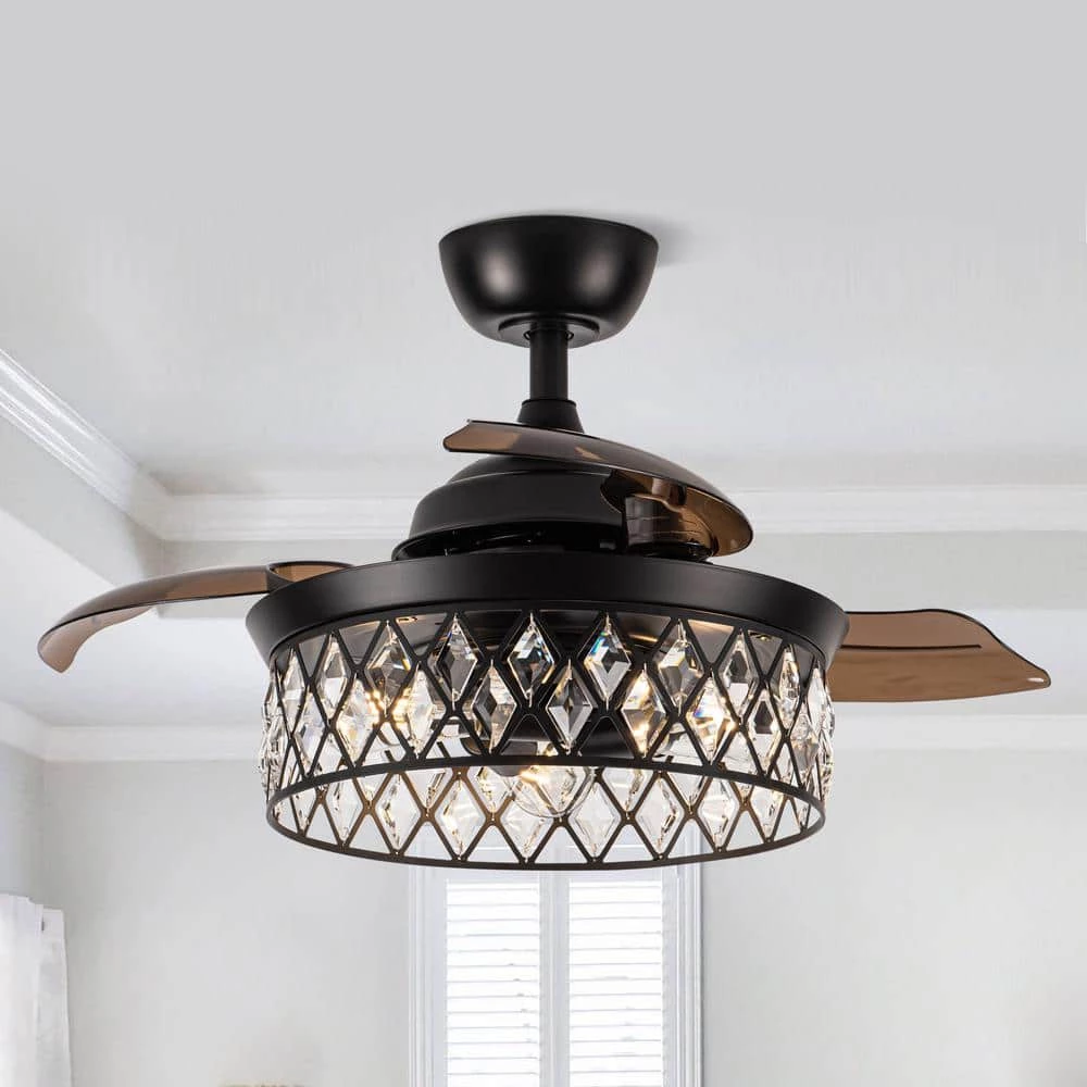 Enjoy a refreshing breeze and bring energy-efficient style to your abode with this modern industrial caged 35.83 in. ceiling fan. A blend of industrial design and elegant lines adds simplicity to your decor. The black finish adds your living space a flair of upscale elegance, while glamorous, shimmering crystals diffuse ample brightness to serve as a visual centerpiece in your room. 4-in &10-in L downrods included, you can choose the length you like.