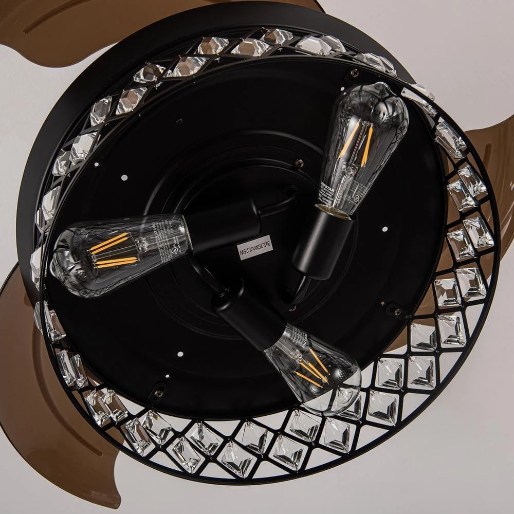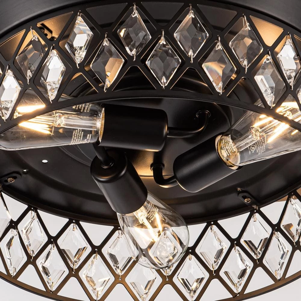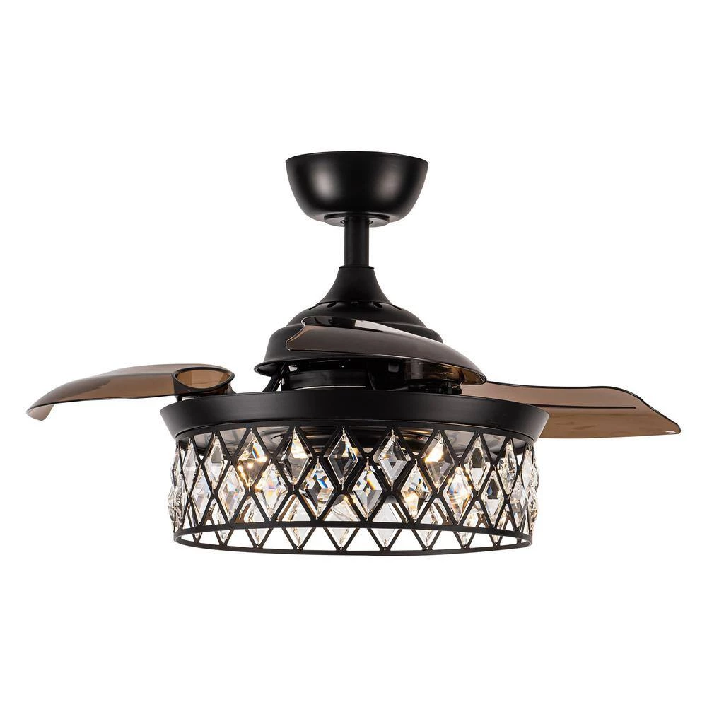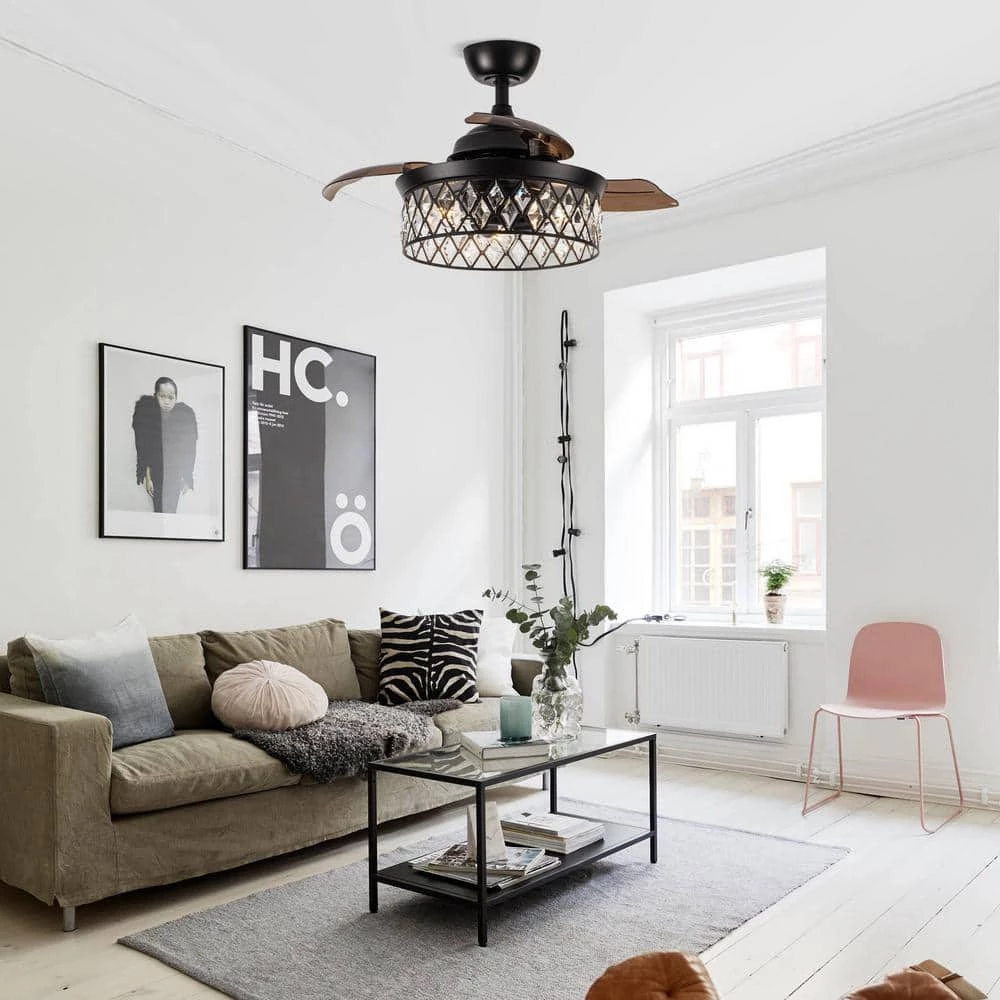 Enjoy a refreshing breeze and bring energy-efficient style to your abode with this modern industrial caged 35.83 in. ceiling fan. A blend of industrial design and elegant lines adds simplicity to your decor. The black finish adds your living space a flair of upscale elegance, while glamorous, shimmering crystals diffuse ample brightness to serve as a visual centerpiece in your room. 4-in &10-in L downrods included, you can choose the length you like.