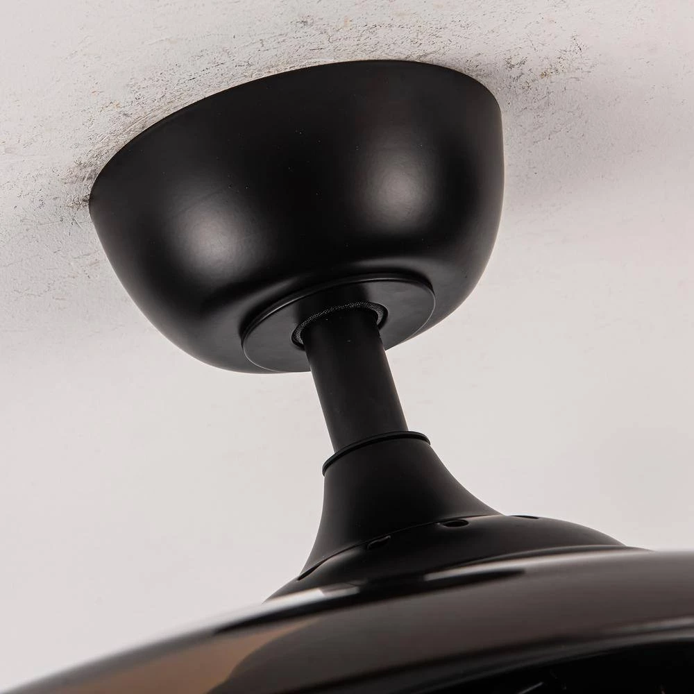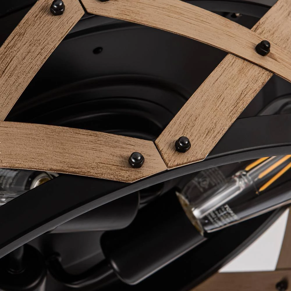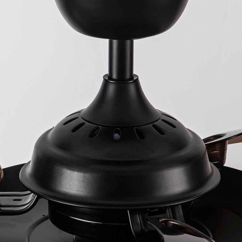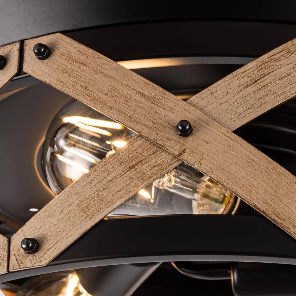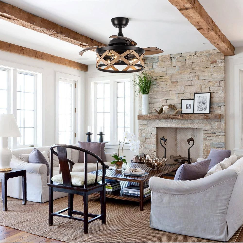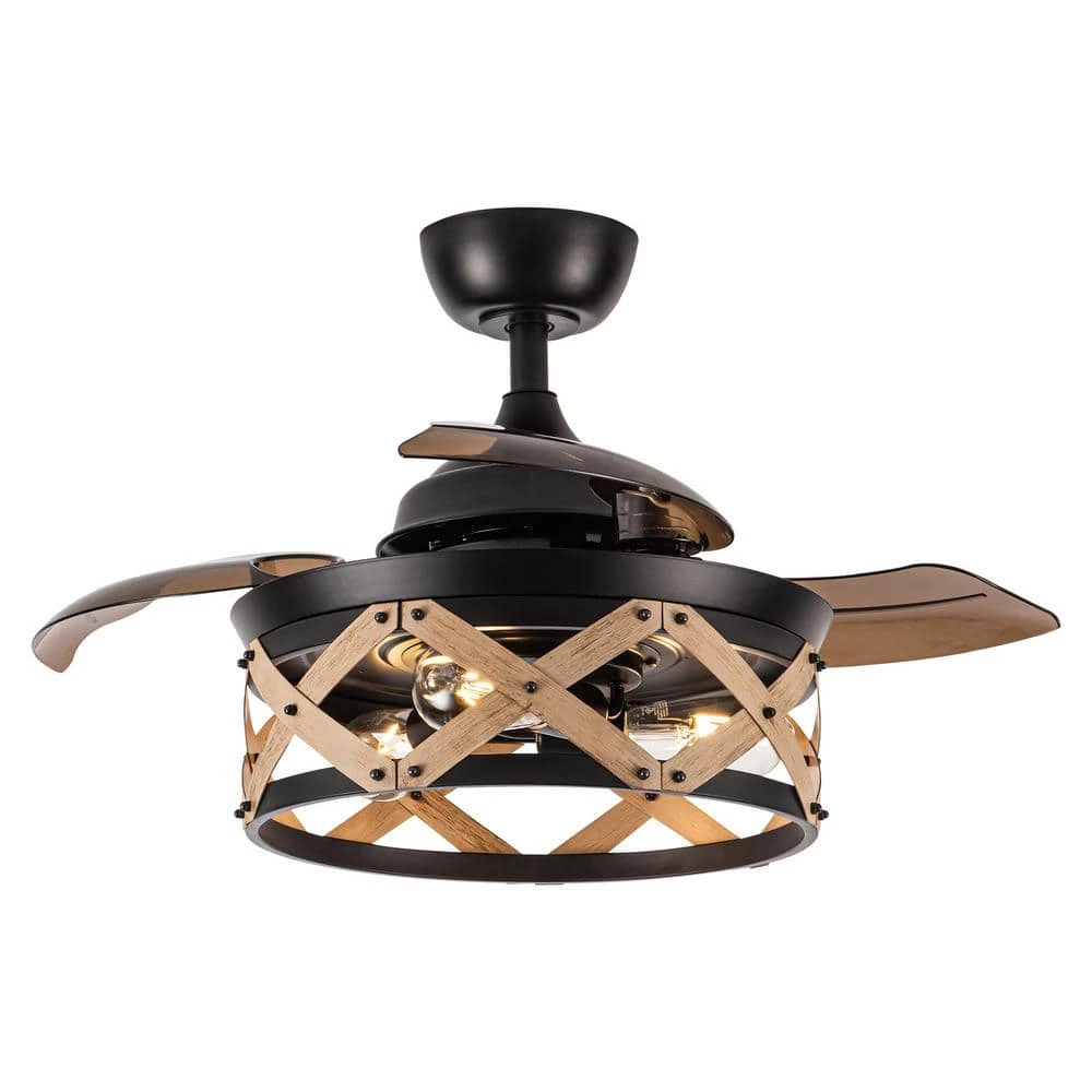 Stir up the stale air in your living room with this 35.83 in. ceiling fan and maximum 25-Watt Light Kit. With a X-shaped cross batten wood cage, the fan and light bring a rust look to your current decor. The fan includes a remote control, so you can change the speed of the fan or turn the light on or off without leaving your chair. The black ceiling fan features an iron cage with retractable 3-blades. When the fan is switched off/on, the blades retract/extend by remote control. Near-silent motor and maximum comfort make ceiling fans ideal for living, bedroom and kitchen areas.