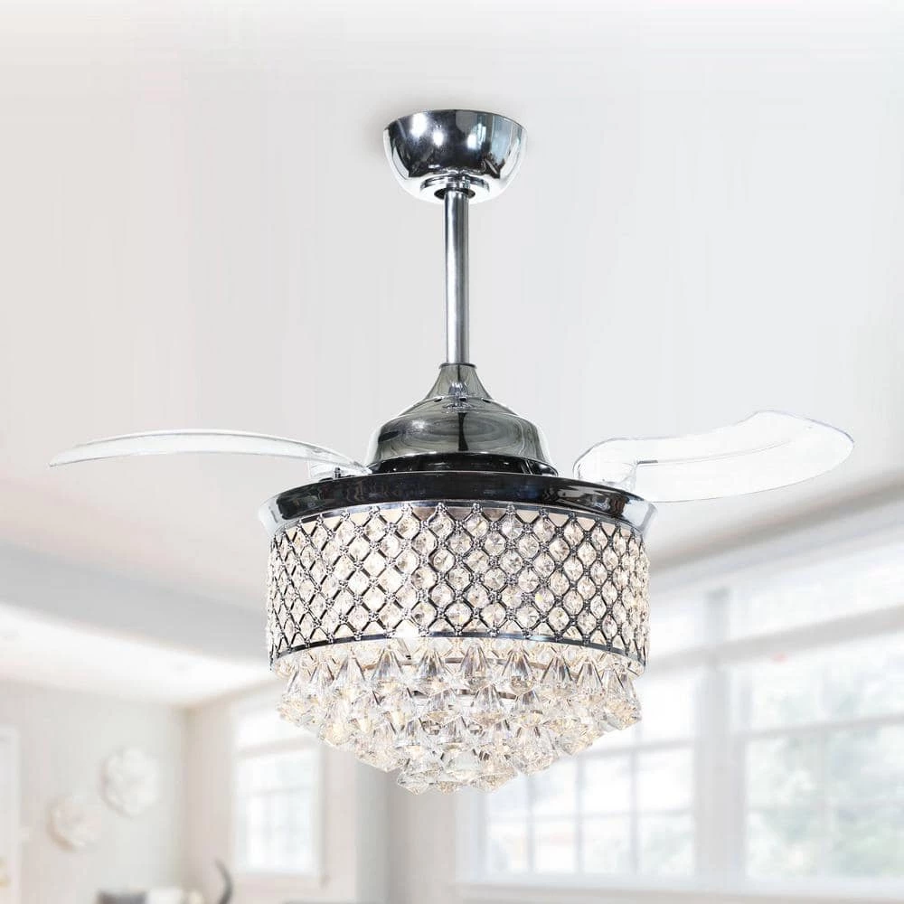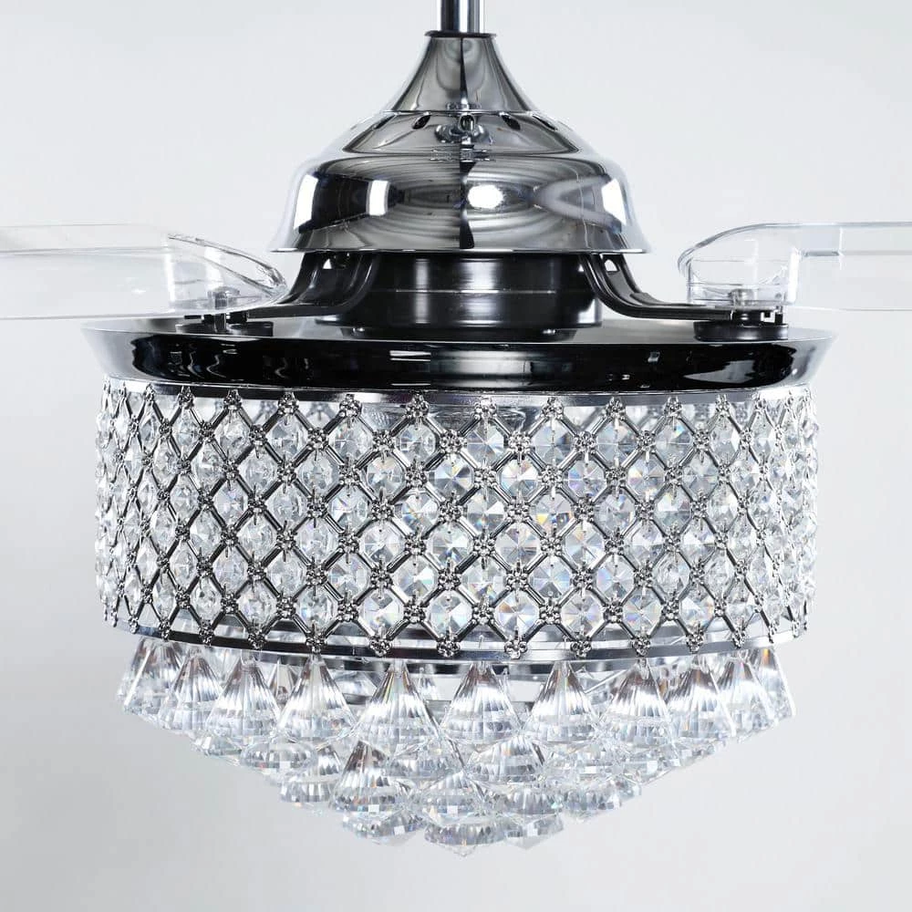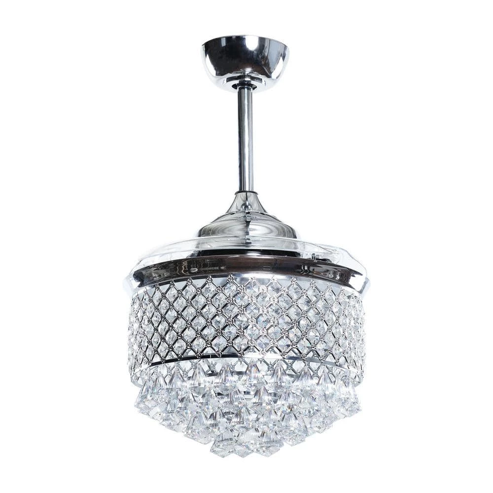 - Chrome frame and crystal decoration make the fan look more atmospheric