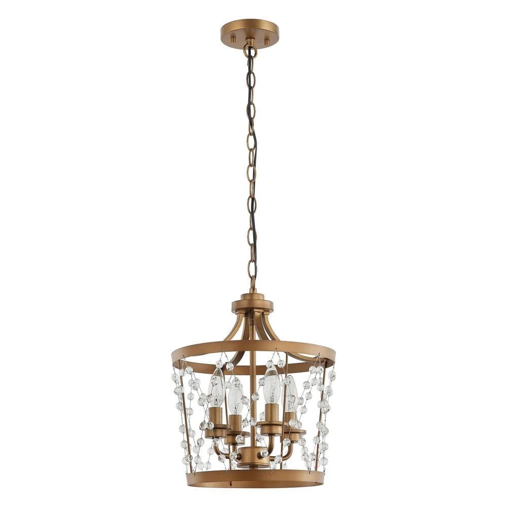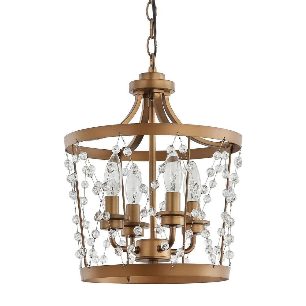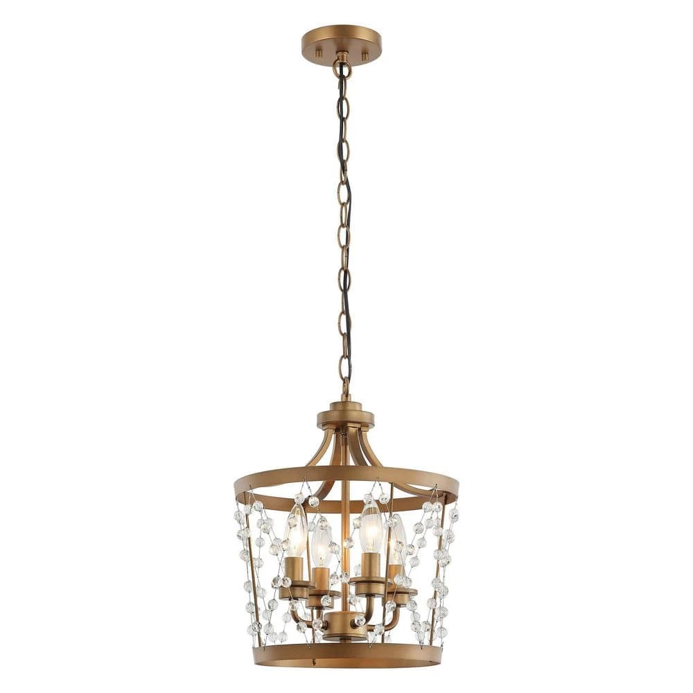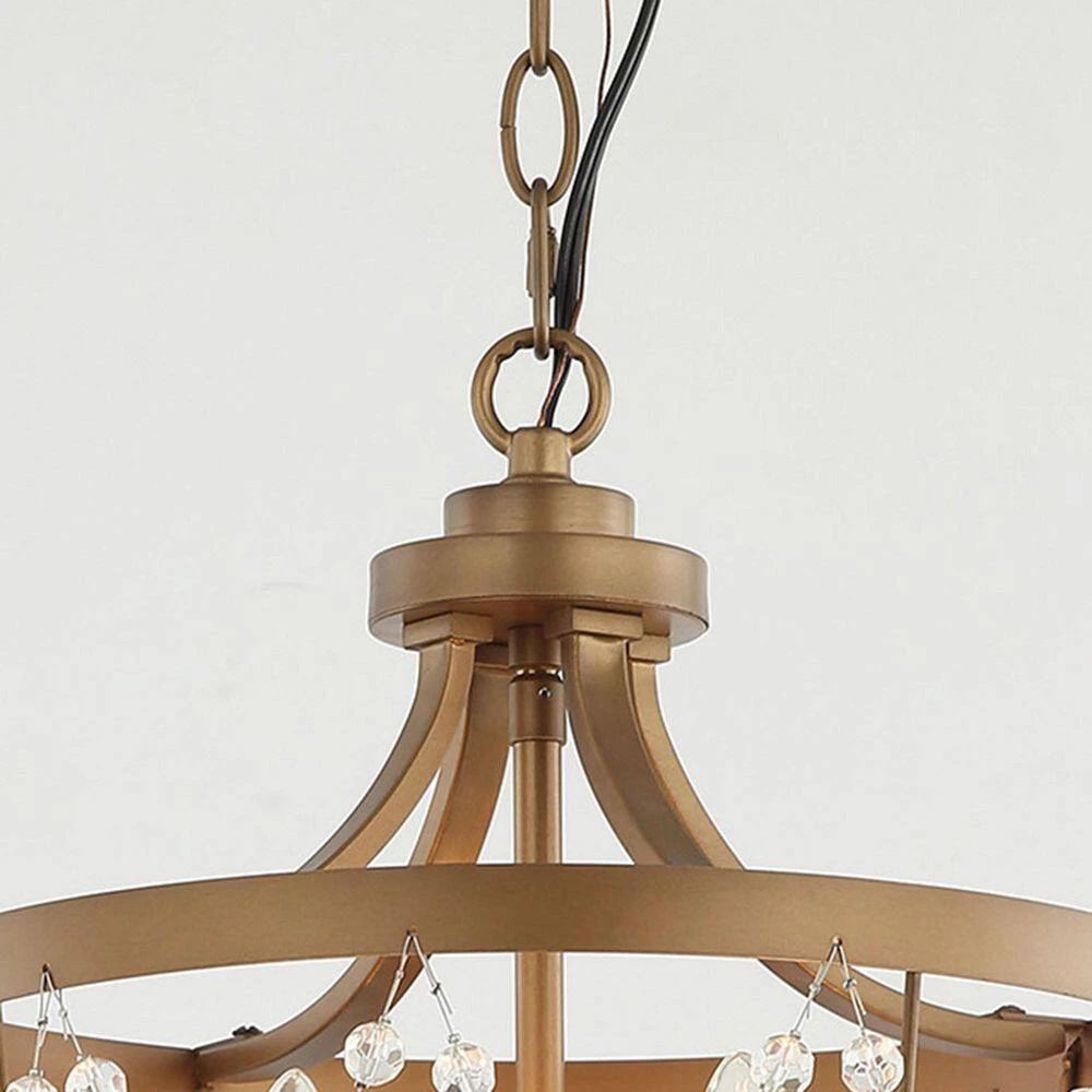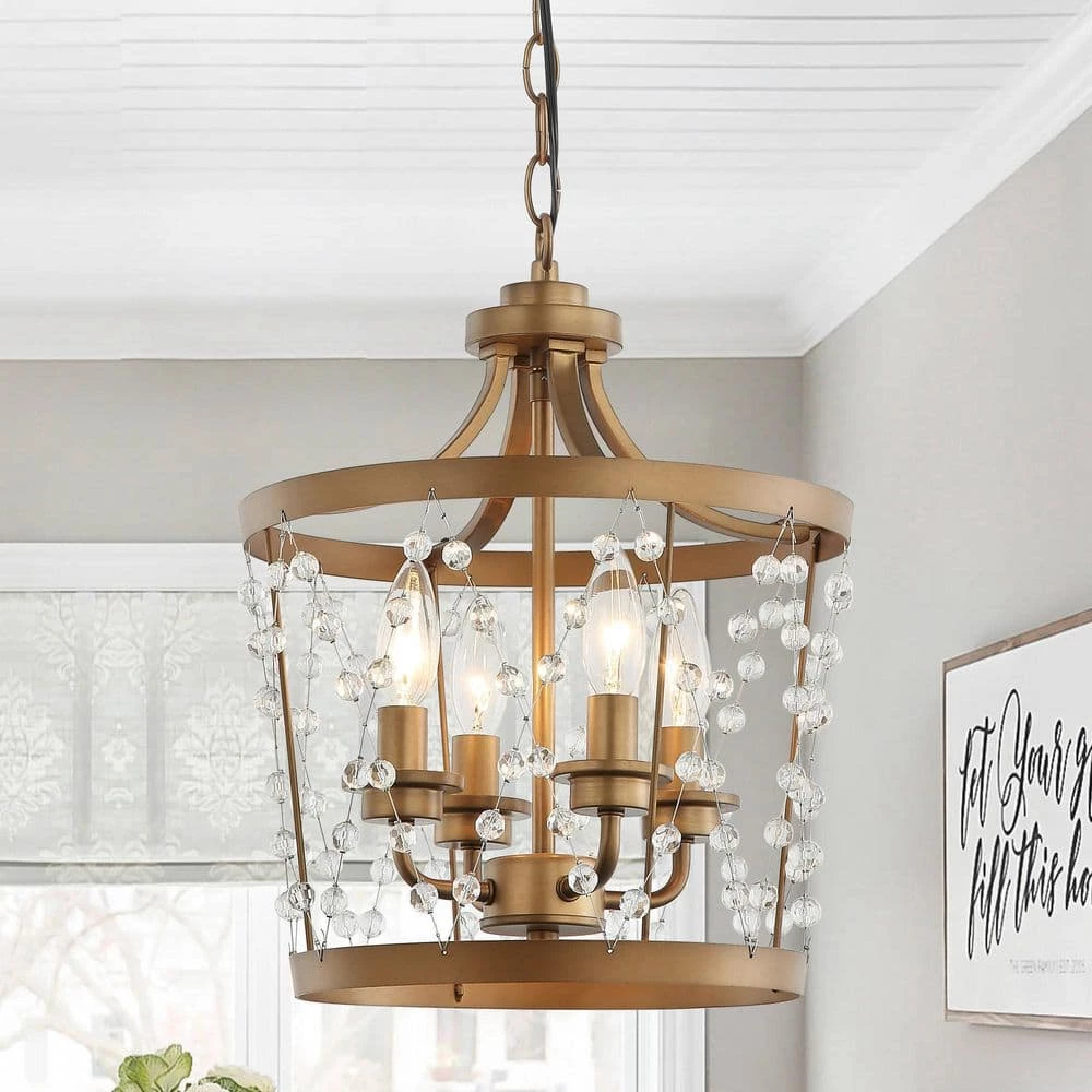 Perfect art decoration combines the gold finish and crystal beads design. Interprets the revolutionary creativity of the kitchen and dining room to a new level with this crystal ceiling light. Hang it in the foyer to cast a warm and welcoming glow for guests, then place it under a fancy dining table, an artistic vase filled with flowers and vintage candlesticks, or simply hang it from the ceiling of the hallway to light up a festive evening. With 4 candle bulbs, the warm and romantic atmosphere brought to you by the lamps is transmitted, which is a very charming experience.