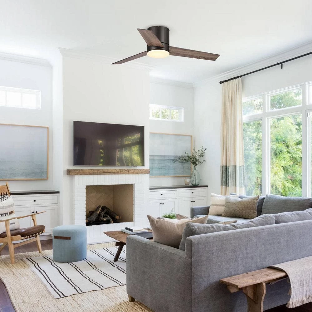 This 48 in. low-profile ceiling fan is a chic and convenient addition. 3 sleek, reversible blades enhance the look of the fan while lending energy efficiency to any time of the year. Designed for rooms with shorter ceilings, the integrated dimmable LED light adding simplicity to style and offer wonderful illumination. The included remote controls the power, 3-speed settings of the fan, the reversible airflow and light as well for the convenience of operation.