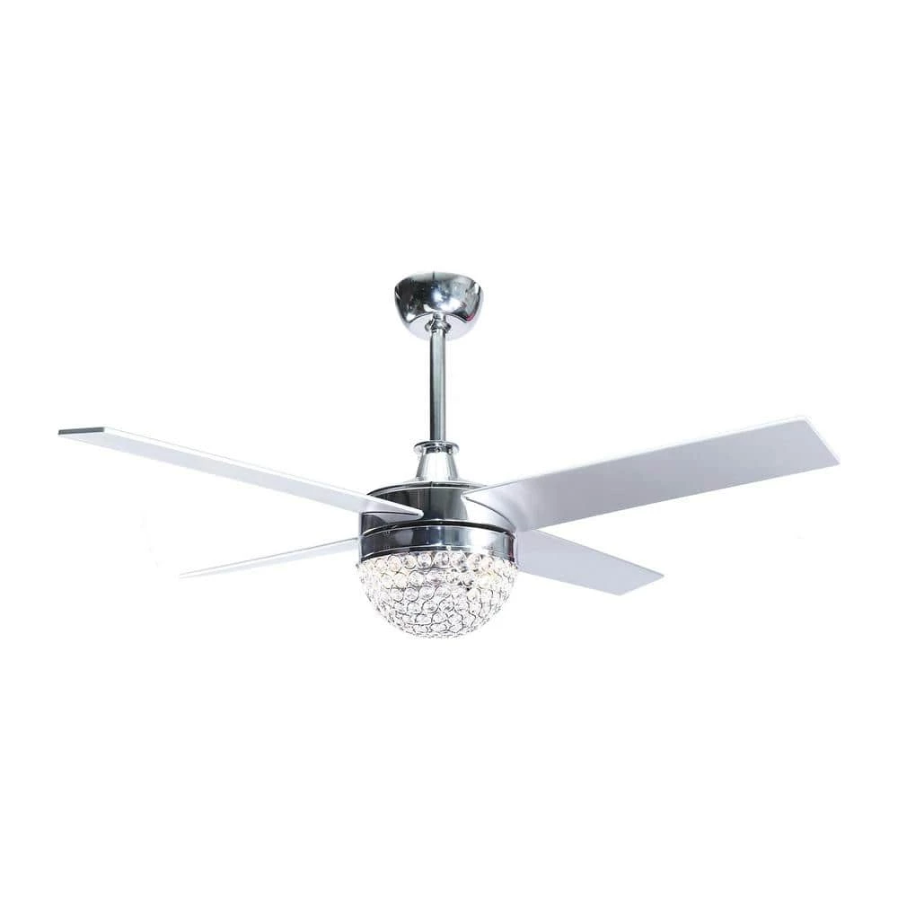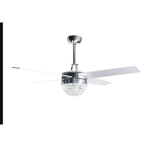 It is a better combination of ceiling fan and crystal chandelier. 4 chrome-plated chrome blades bring a modern feel to the cool fan. 3 speeds handheld remote control makes it easy to change fan speed and light. It also can improve the air you breathe, keep the temperature comfortable year round.