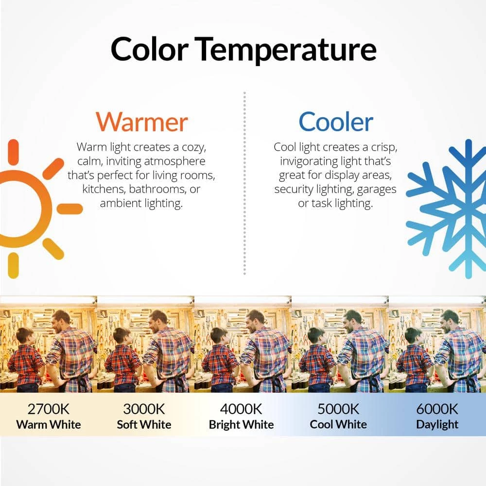 - Color temperature: 3,000K for low heat, cool and soft white light
