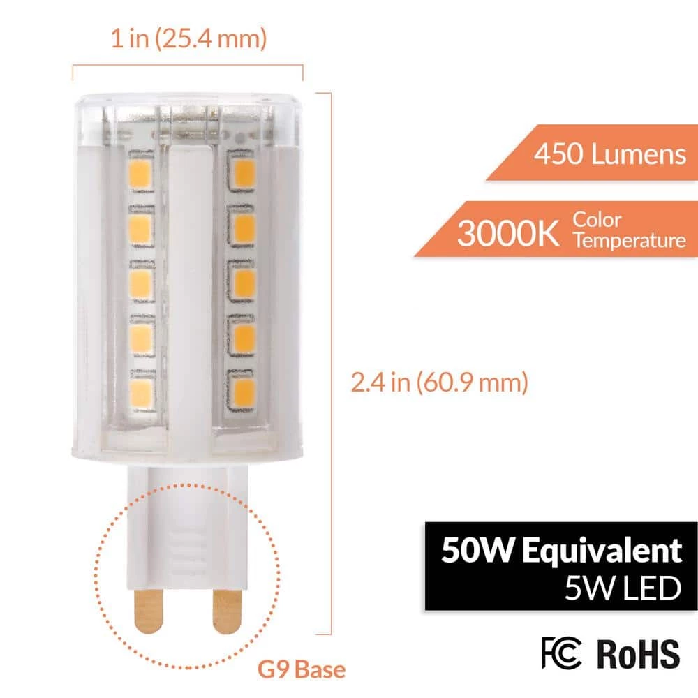 - Features: G9 base LED bulb, 5-Watt (50-Watt equivalent), 120-Volt, energy saving, dimmable