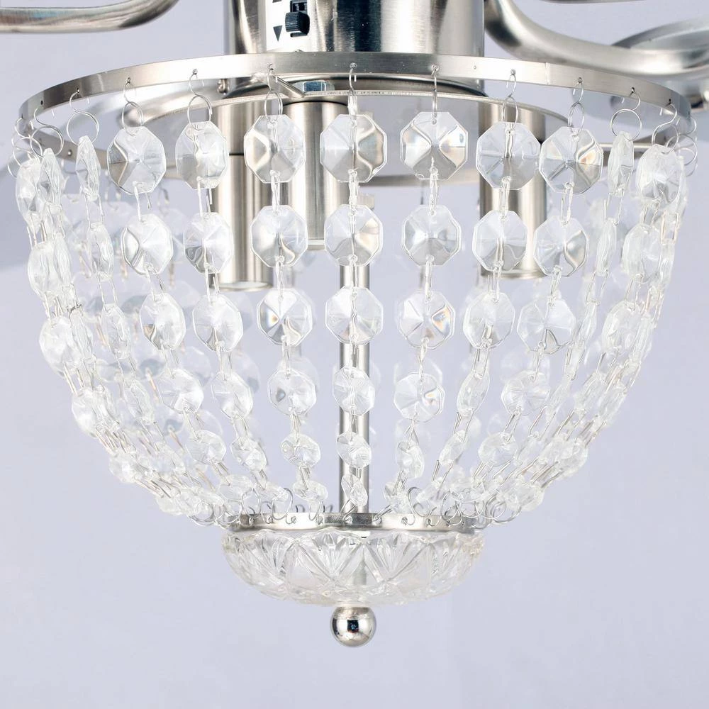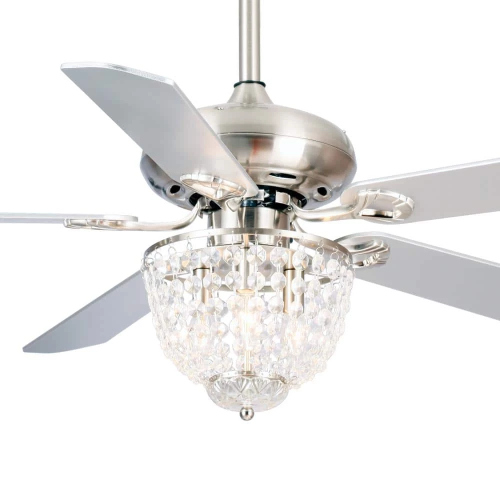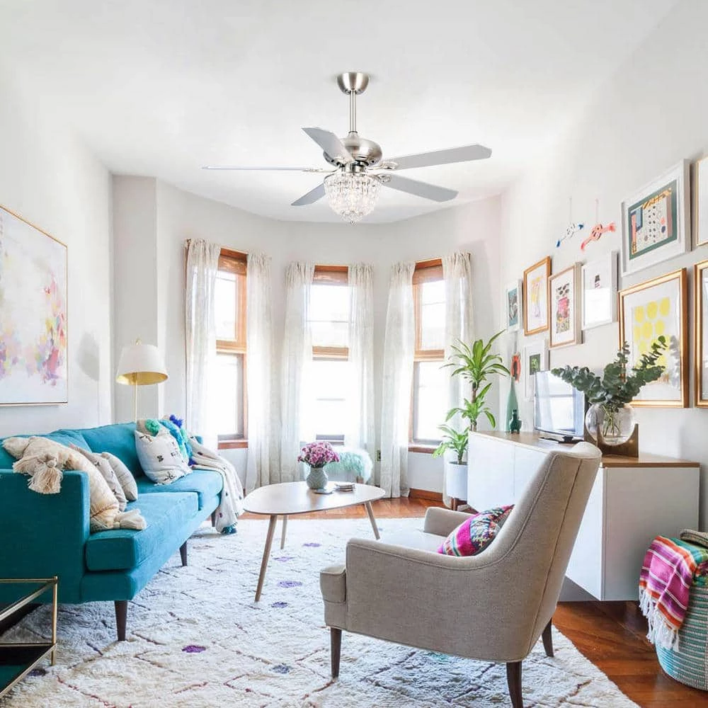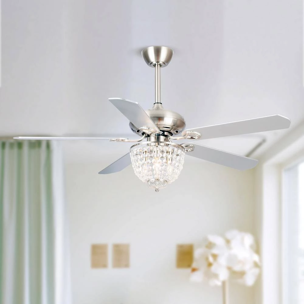It is a better combination of ceiling fan and crystal chandelier. 5 chrome-plated chrome blades bring a modern feel to the cool fan. The 3-speed with an integral reverse function. The handy remote control provides independent downlight operation and speed control. The design is perfect for rooms and the LED light kit offers independent light and speed control operation.