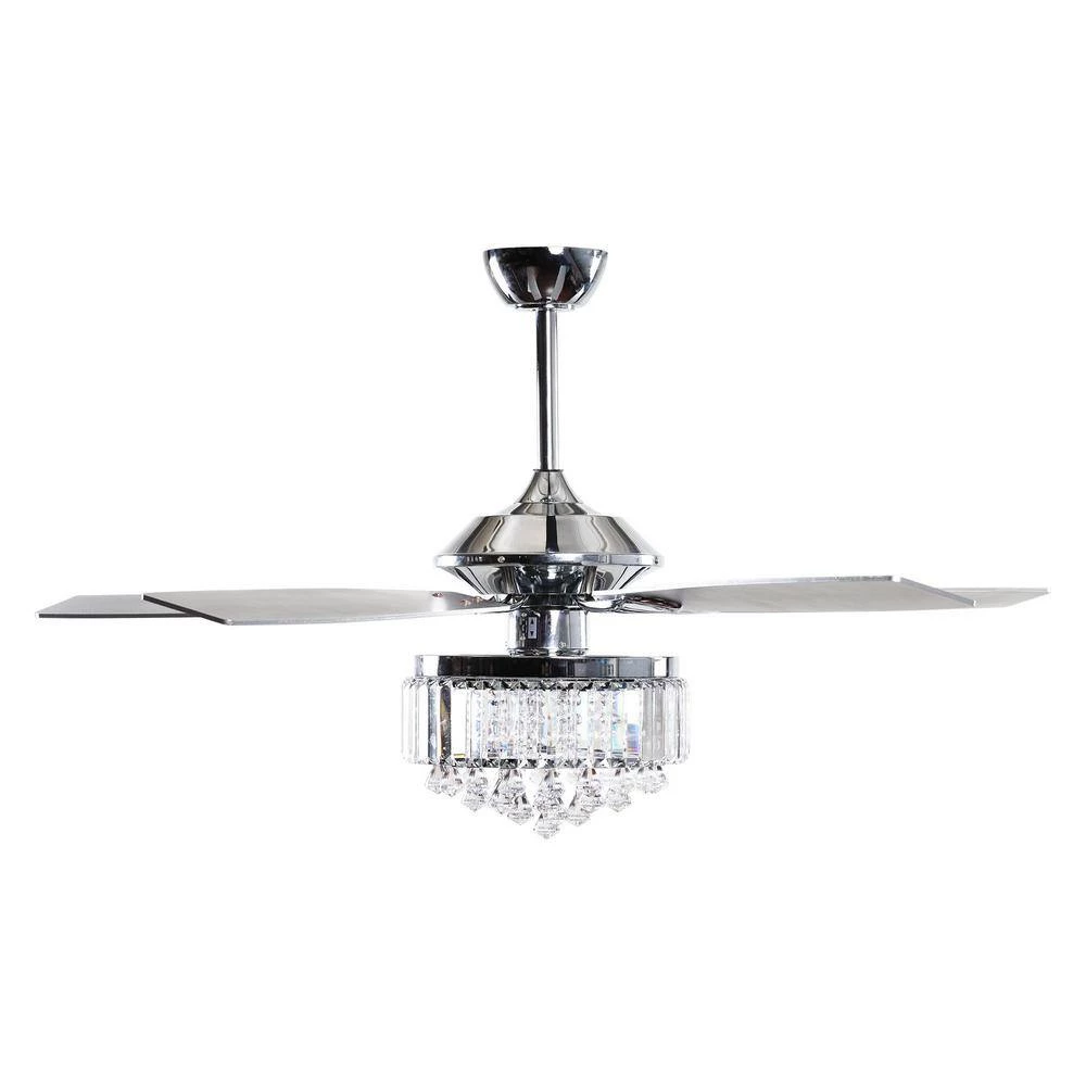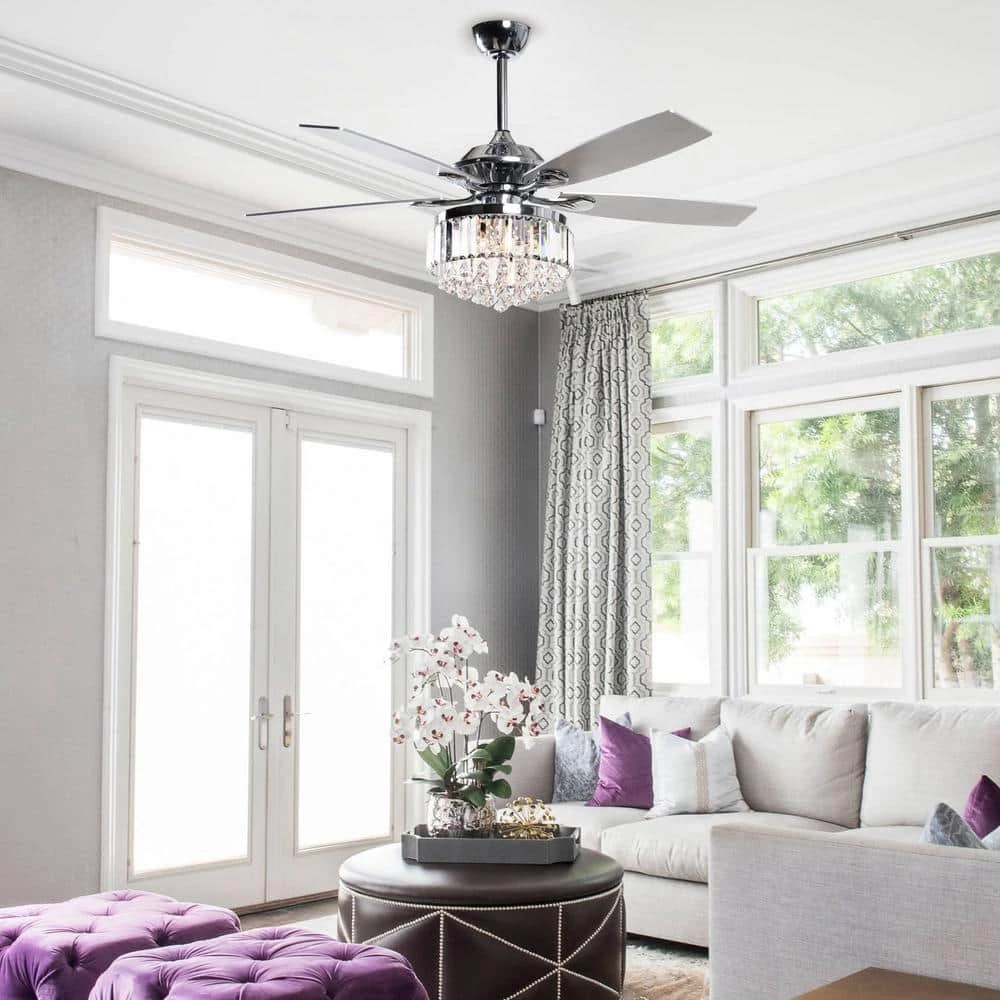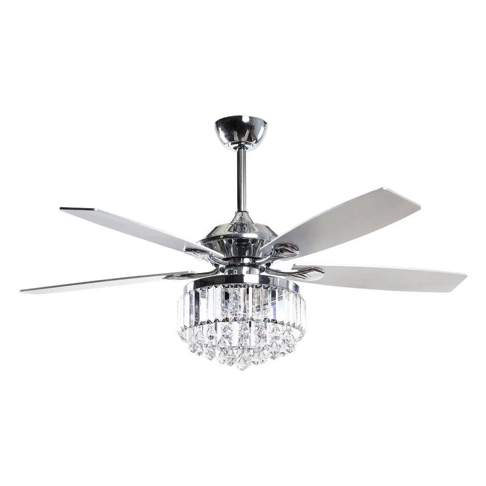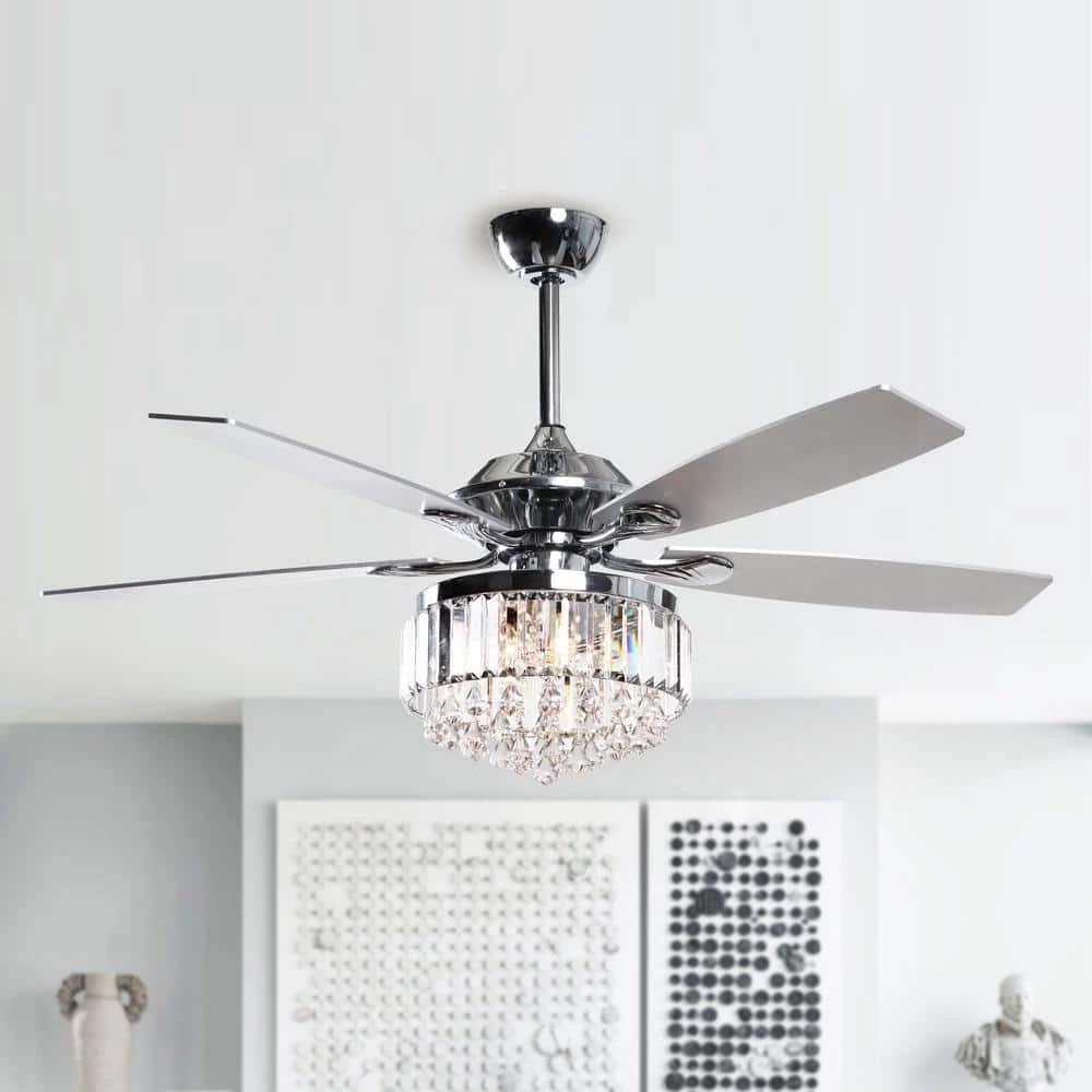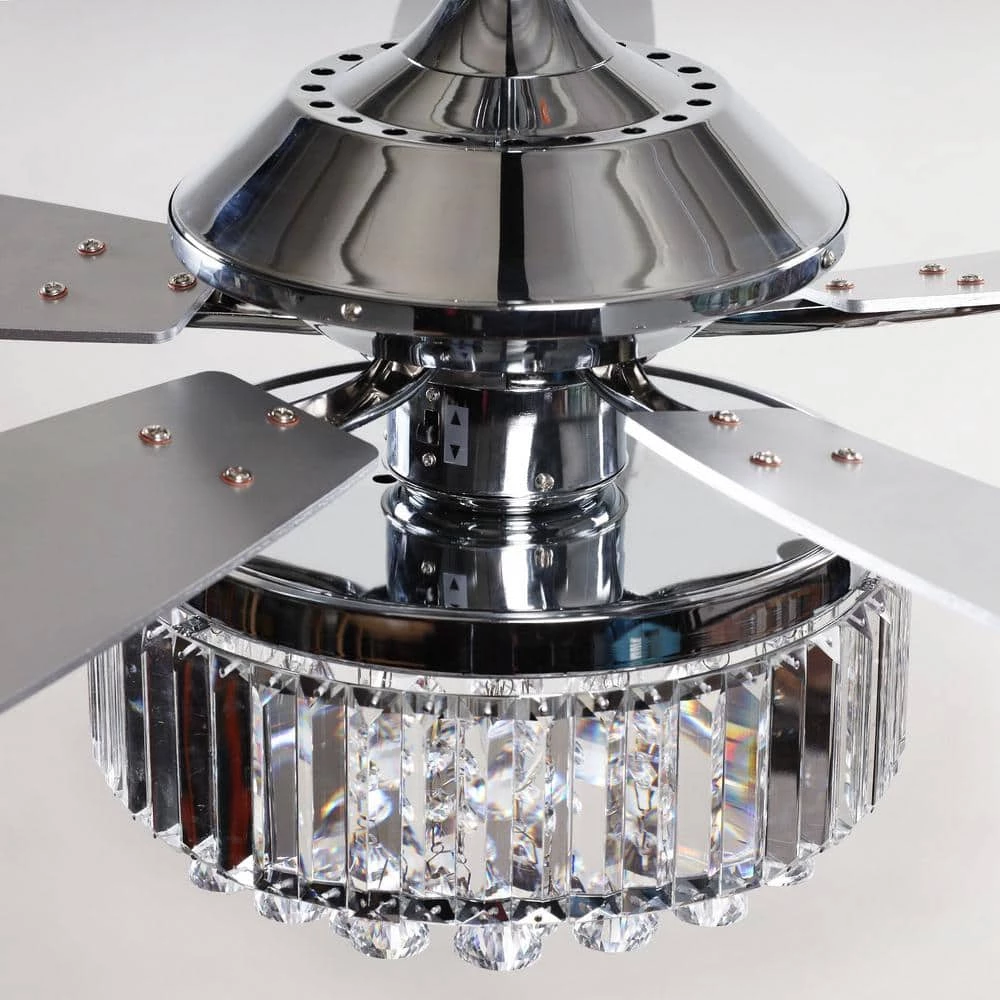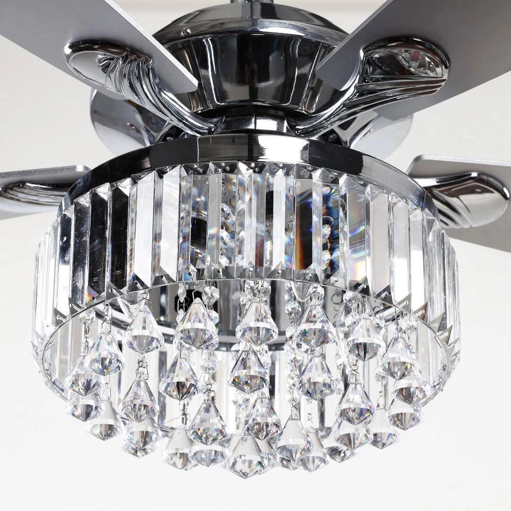 Add a contemporary look to your home with crystal Chrome finish ceiling Fan. It is a better combination of ceiling fan and crystal chandelier. 5 chrome-plated blades bring a modern feel to the cool fan. The handy remote control provides independent downlight operation and speed control. You can adjust it to your preferences. Update your space with contemporary flair with this chic and powerful ceiling fan.