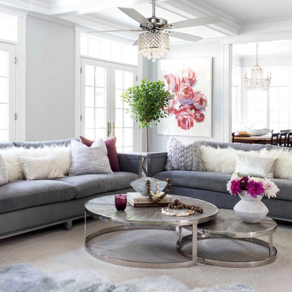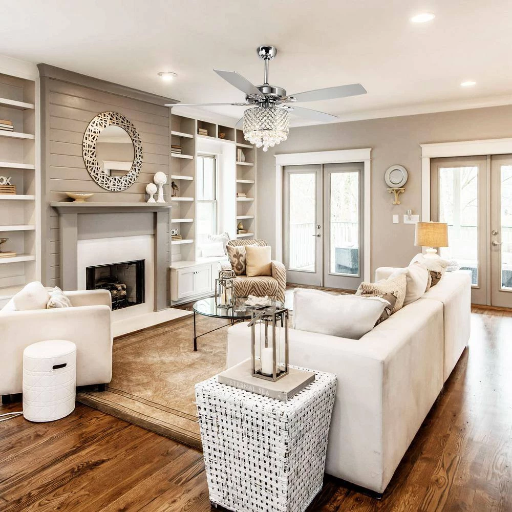 This chandelier crystal Lighted 5-Blades ceiling Fan. The 3-speed reversible motor ensures you find just the right amount of airflow. It is a better combination of ceiling fan and crystal chandelier and it not only meet the heat dissipation, but also meet the lighting needs.It is the best choice for your bedroom or large room.