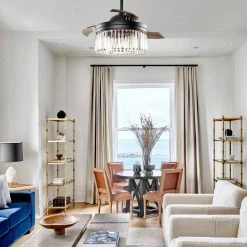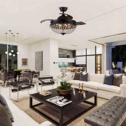 This Crystal 5 Blade Ceiling Fan, Light kit (light bulbs not included) illuminates your room in style with this modern crystal ceiling fan. Use a warm light bulb if soft illumination is preferred. Includes remote control for ease and convenience, featuring for blade speed and light operation.
