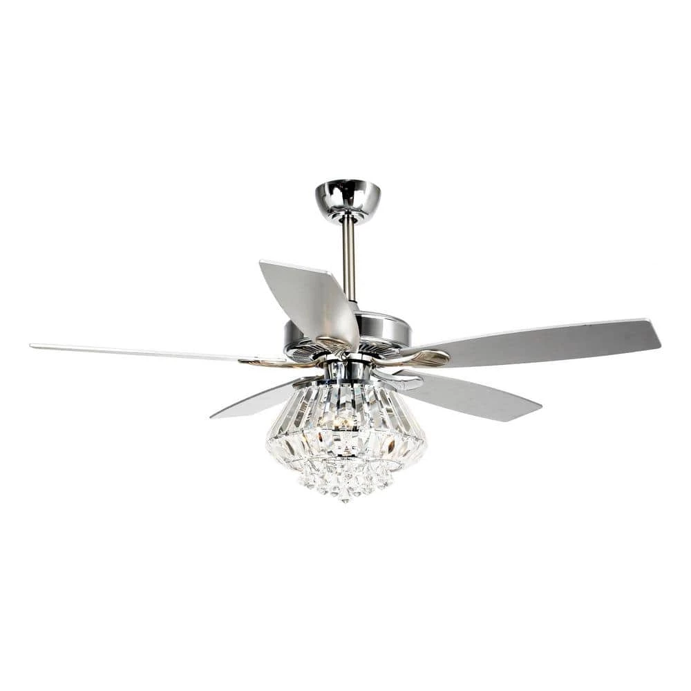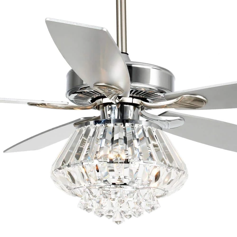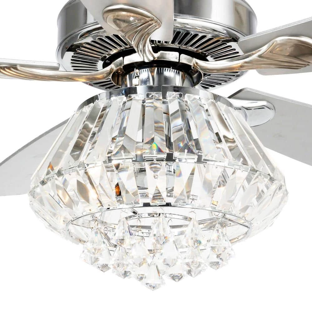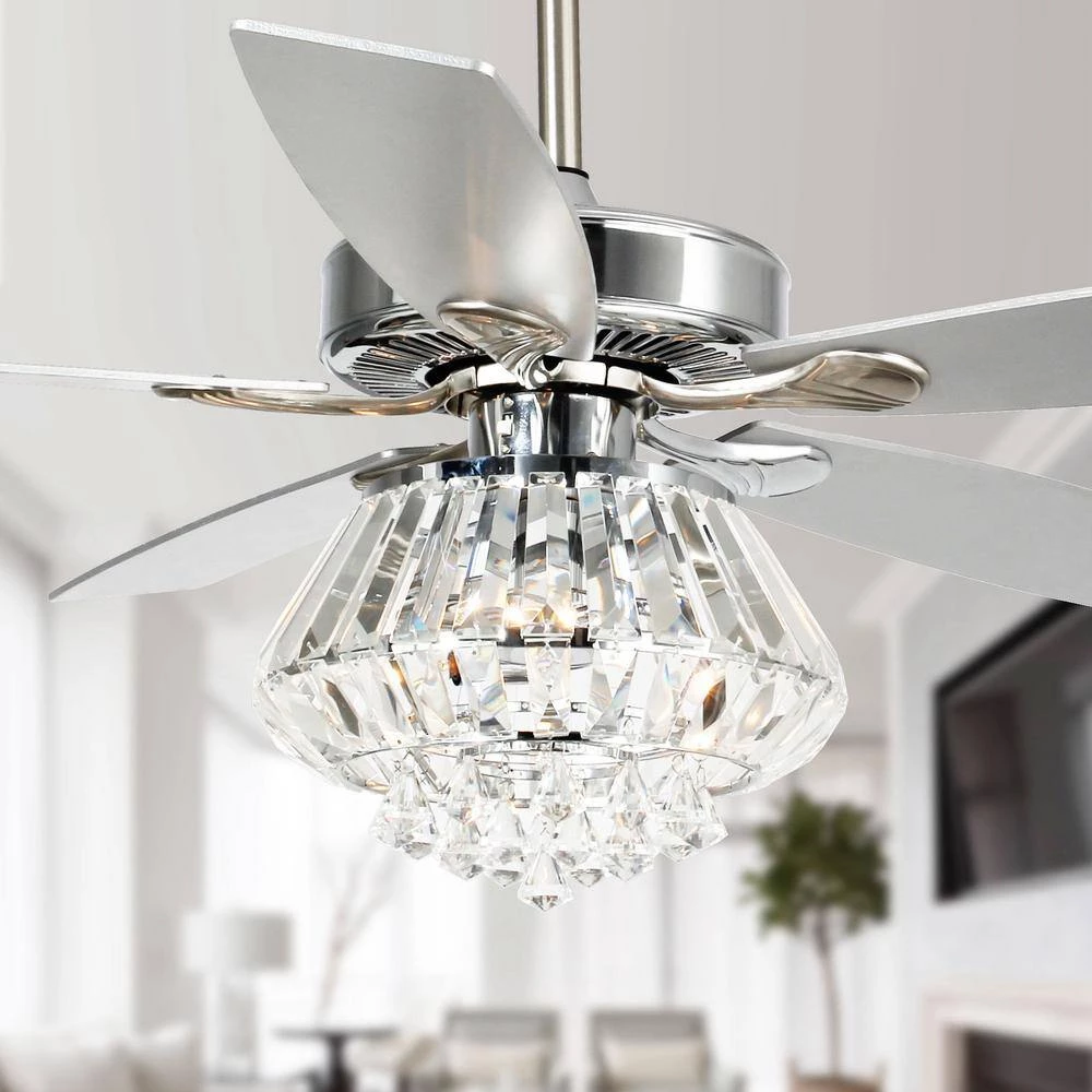 This Crystal 5 Blade Ceiling Fan, Light kit (not included) illuminating your room in style with this modern crystal ceiling fan. Use a warm light bulb if soft illumination is preferred. Includes remote control for ease and convenience, featuring for blade speed and light operation.