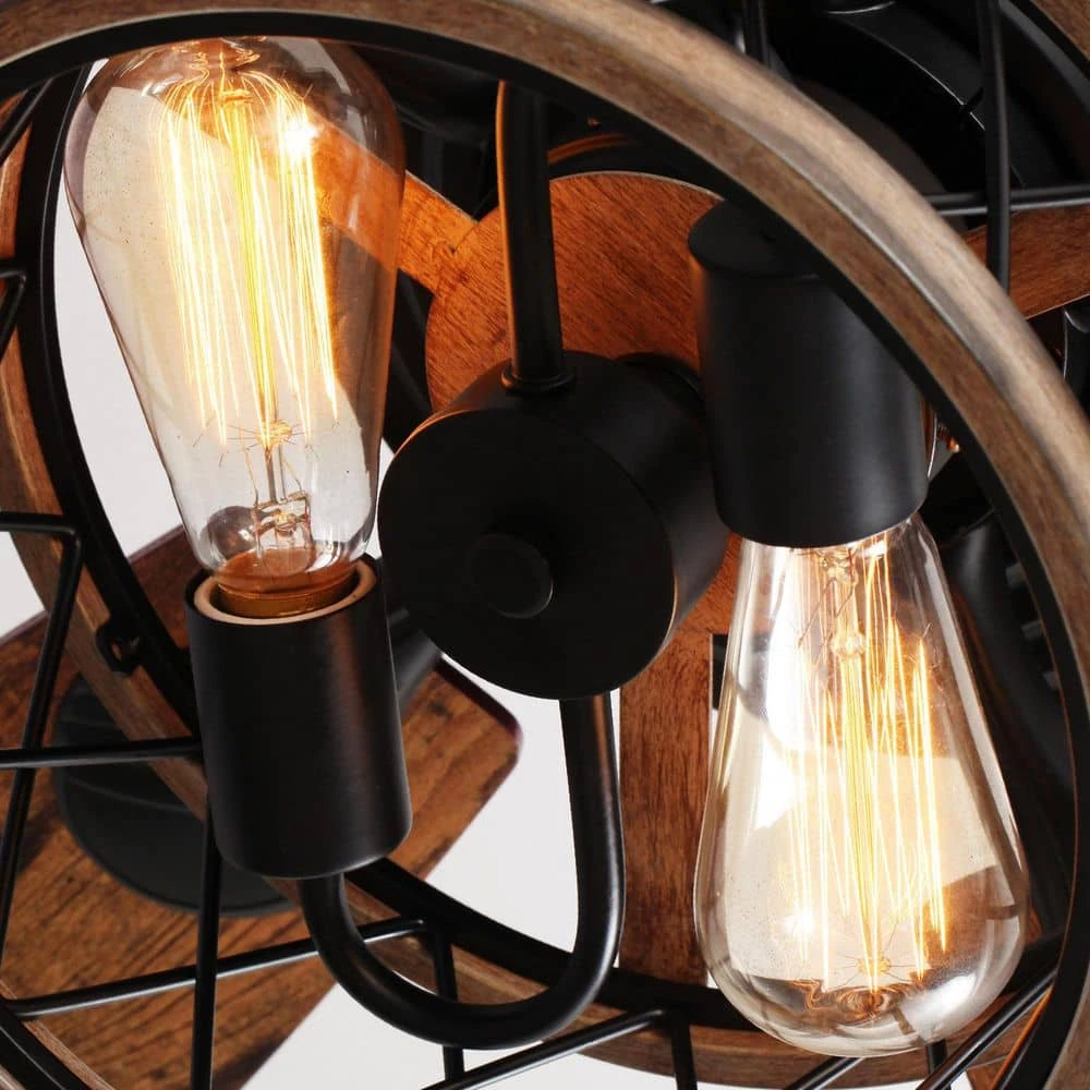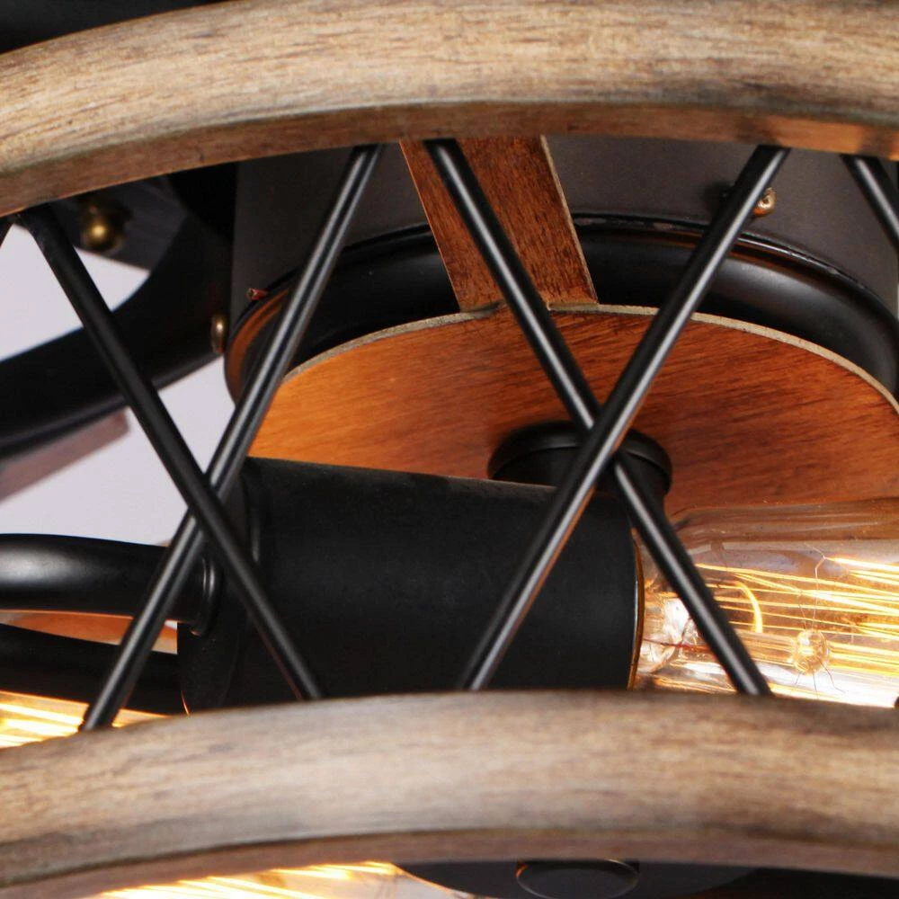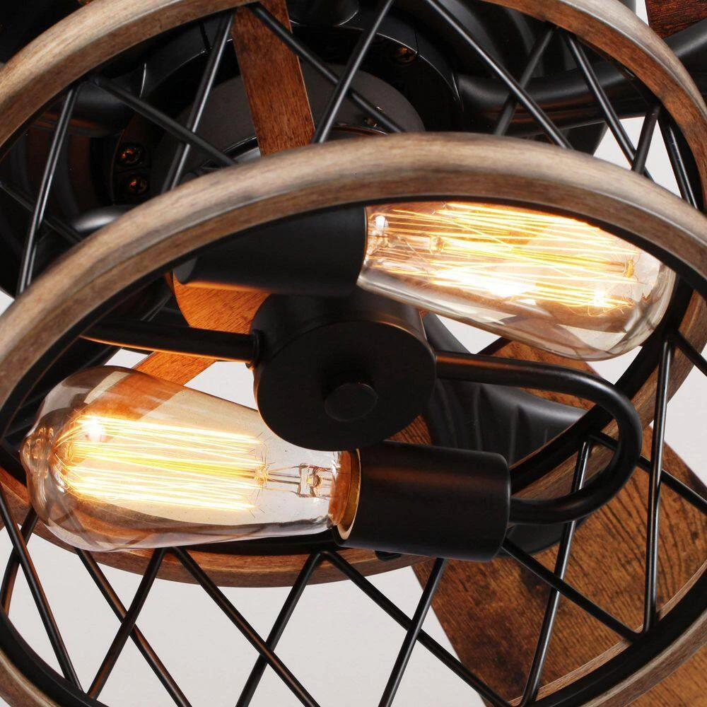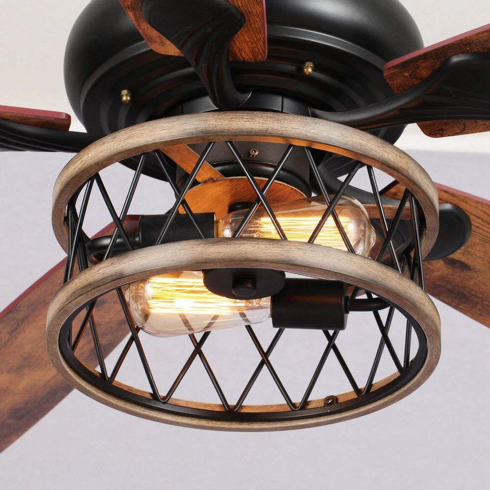This ceiling fan combines 18th industrial-style with 21st-century design and technology. It features 5 brown blades, 2 twist lights and comes with remote control. The cool motor technology delivers powerful air movement with whisper-quiet performance.