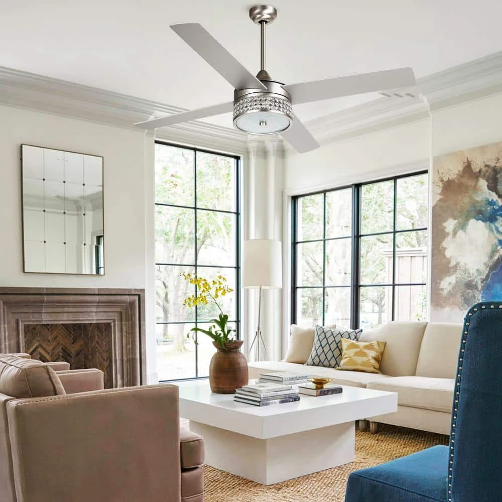 - Retractable blades: 4 satin nickel reversible blades, you can change the direction of your fan from downdraft mode during the summer to updraft mode during the winter