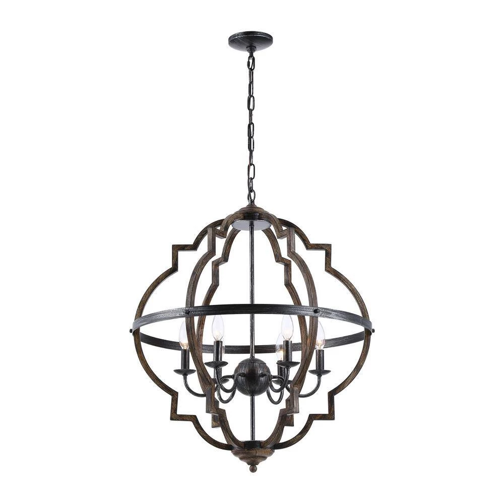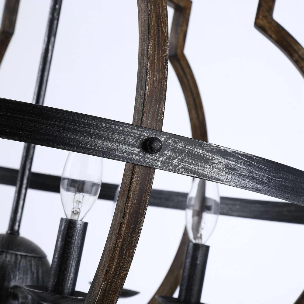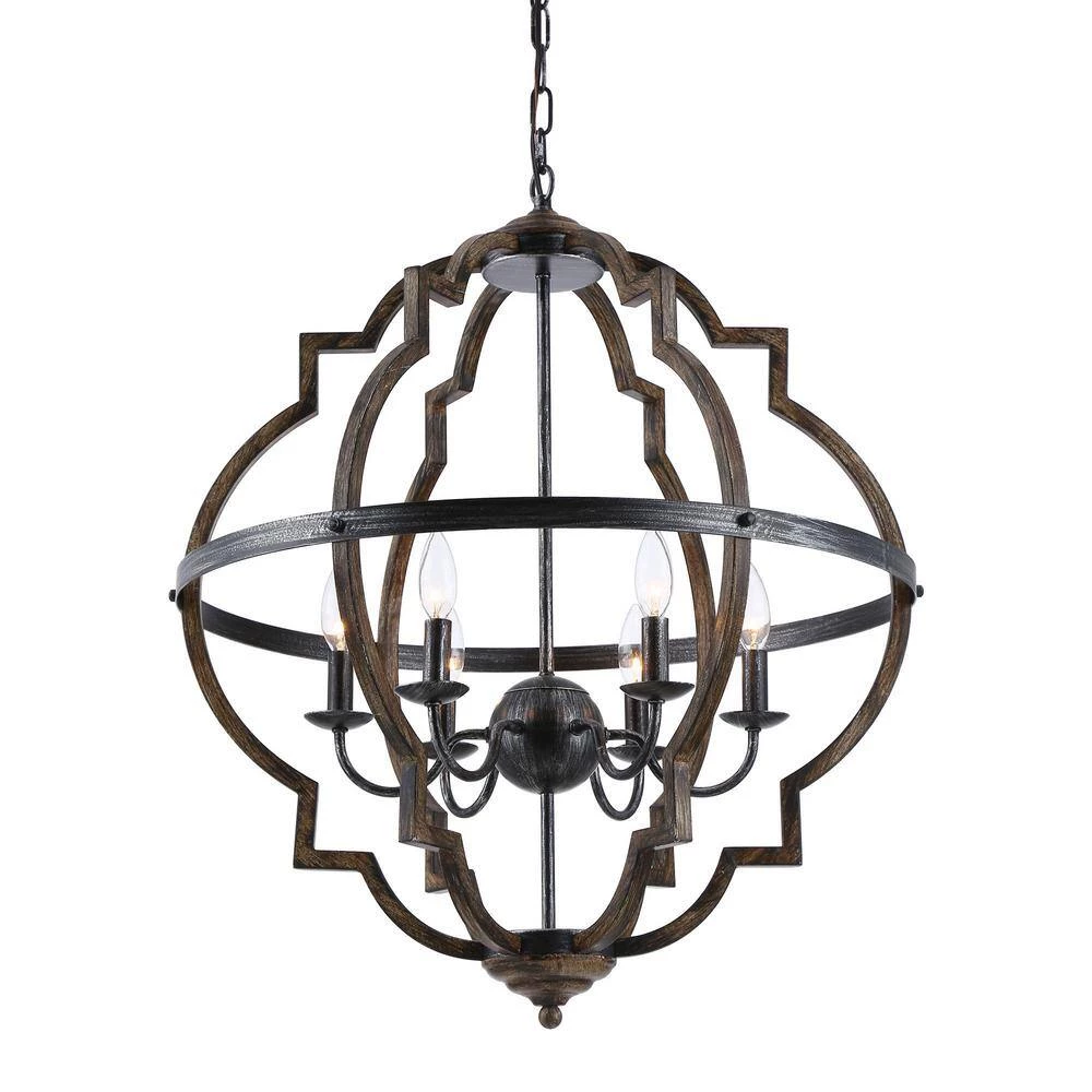 This 6-light chandelier elevates the look of your space no matter the style. It’s made from metal and features wood grain details on the vertical bands that complements the black-hued horizontal band. Inside the candelabra supports six 60-Watt bulbs (not included), for a modern appeal. Whether decorating your country rustic cottage or city modern house, no matter hanging in the entryway, foyer, dining room, living room or bedroom, this product could apply for a wide range of scenarios.