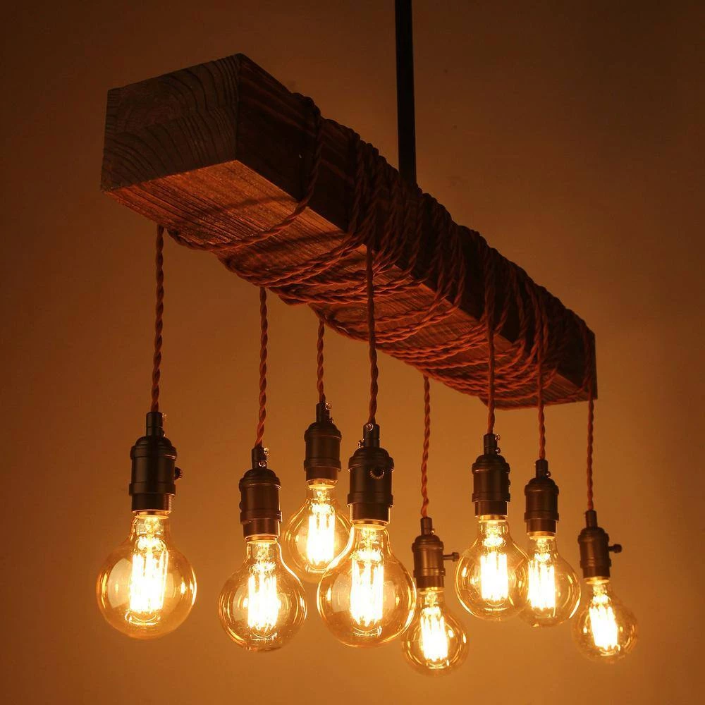 It features little more than bare bulbs suspended from cordswrapped around the bar, but this minimal look makes a big impact, It is simple but delicate. Best represent the nature of retro, industrial, and rustic way of lighting. One year limited warranty