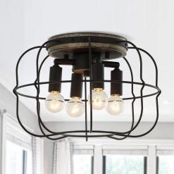 15 in. Round Capiz and Wood Bead Flush Mount Ceiling Light by 3R Studios