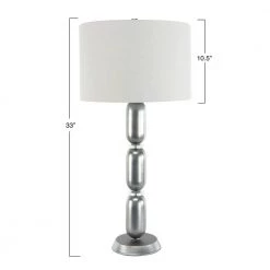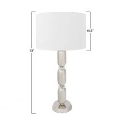 32.75 in. Silver Metal and Glass Table Lamp with Linen Shade by 3R Studios