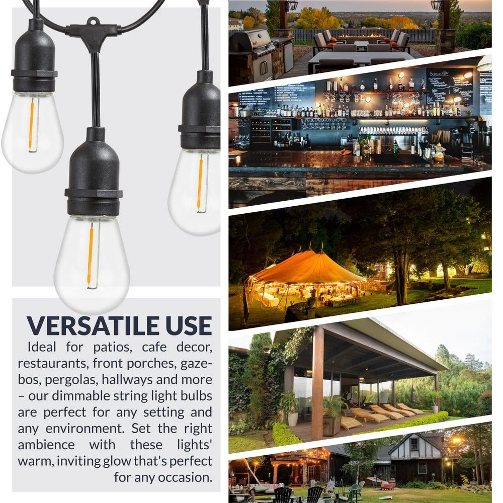 - Versatile use: ideal for patios, cafe decor, restaurants, front porches, gazebos, pergolas, hallways, and more – our dimmable string light bulbs are perfect for any setting and any environment, set the right ambiance with these lights’ warm, inviting glow that’s perfect for any occasion, set the lights and sync to music