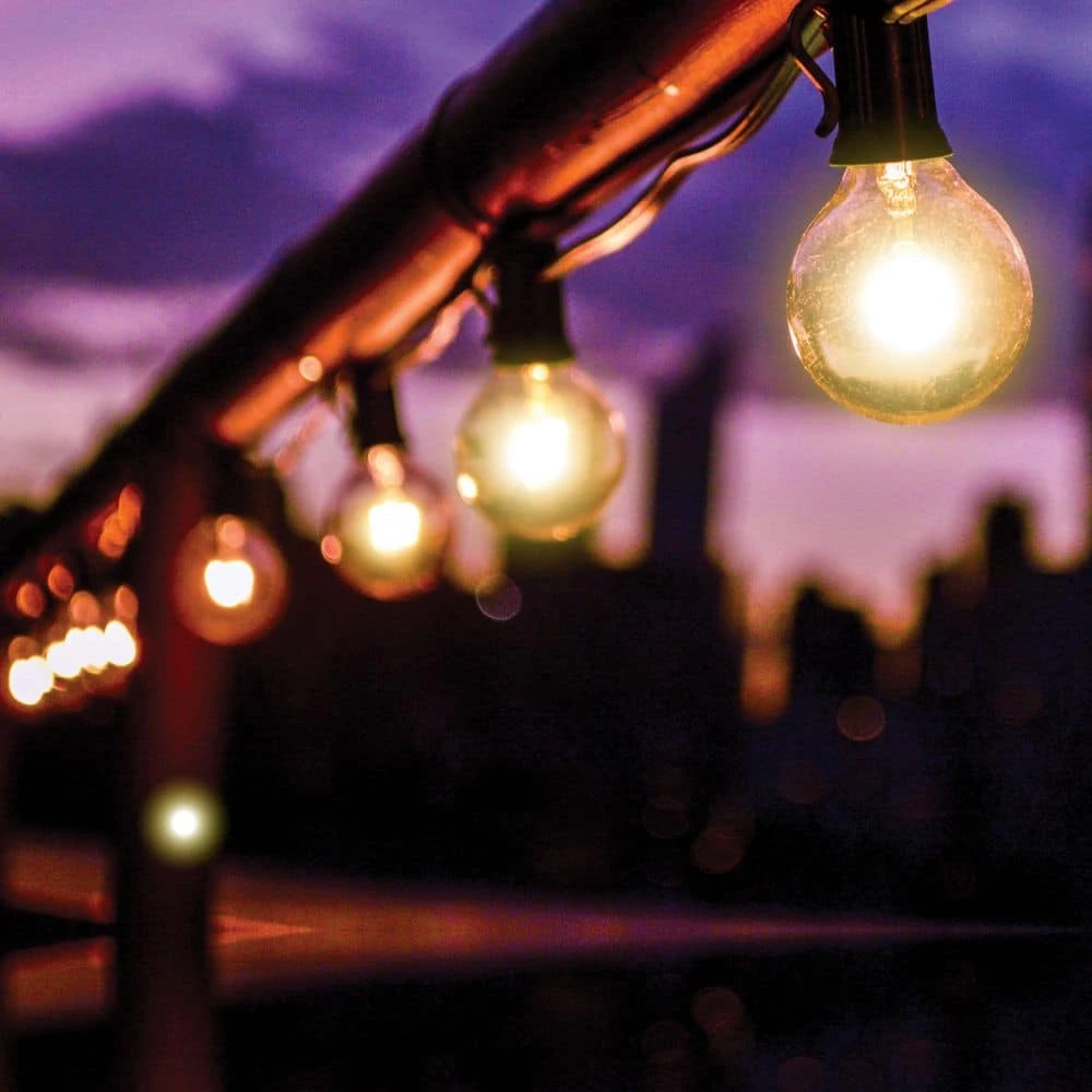The new, stylish and functional 25 ft. G50 LED energy-saving patio string lights have arrived. Stop wasting tons of energy with old incandescent versions and upgrade to the energy friendly version. Our LED outdoor hanging lights come with 26 very big, shatterproof, 1-Watt G50 LED light bulbs (including 1 free extra-large bulb.). These bulbs have a C7/E12 candelabra base and emit approximately 30 lumens each for a total of 750 Lumens for the entire strand. Plus, our G50 bulbs are 25% larger than the more common G40 bulbs. The durable construction is weather-proof and shatter-resistant for backyard lights that you can trust. The Newhouse Lighting LED string lights are the perfect outdoor patio lights for your backyard, garden or anywhere you need outdoor light. String them between trees, along a fence line, or in clusters around your space. Newhouse Lighting: Defining Life’s Brighter Moments.