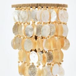 15 in. Round Capiz and Wood Bead Flush Mount Ceiling Light by 3R Studios